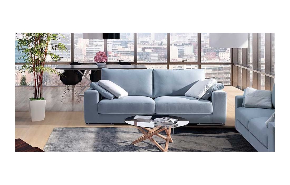 Especificações do Produto Revestimento em tecido ou pele sintética Estrutura em madeira Espumas de primeira qualidade Almofada traseira composta por 80% plume e 20%fibra siliconada Espuma de almofada de assento Hr 30Kg com mola ensacada Pés de metal