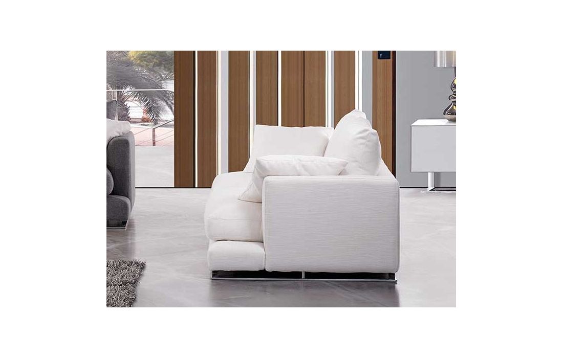 Especificações do Produto Revestimento em tecido, pele sintética Estrutura em madeira Espumas de 1ª qualidade Assento com espuma HR 35 kg comviscoelástico e fibra Pés de metal