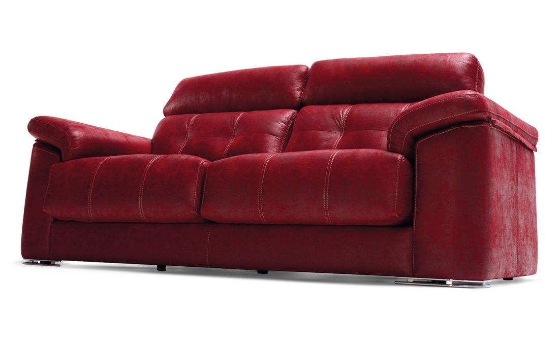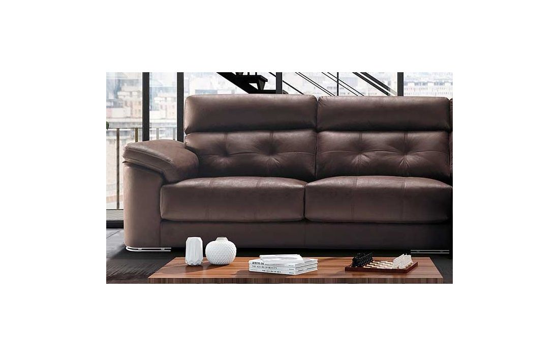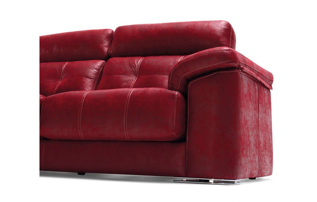 Especificações do Produto Revestimento em tecido, pele sintética e pele genuína Estrutura de madeira Espuma de 25 kg de poliuretano Almofada de assento com espuma de 30 kg Parte superior com almofada dupla 60% viscoelástica e 40% de fibra Almofada traseira com fibra de alta resistência Bancos deslizantes Apoio de cabeça reclinável Pés metálicas