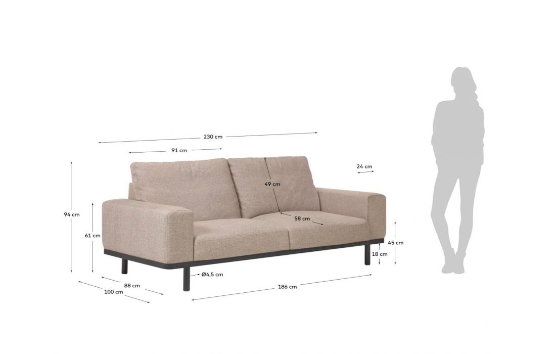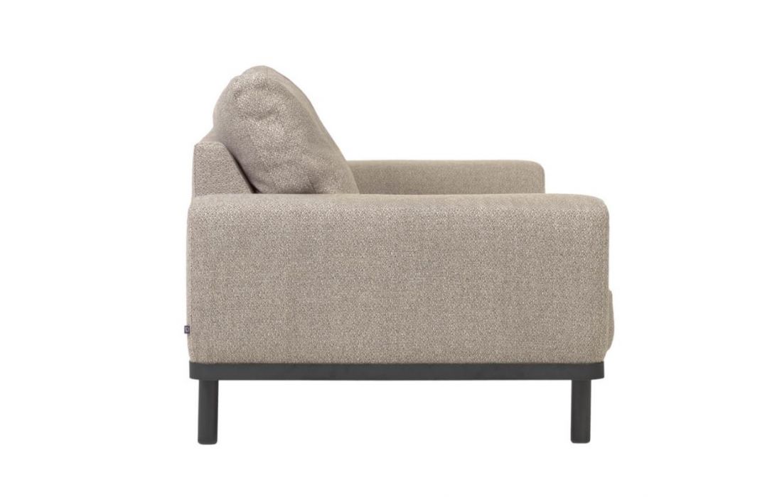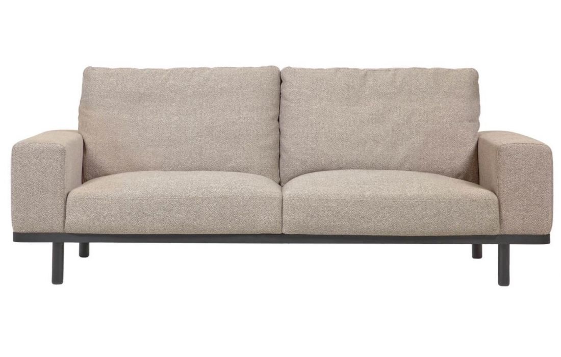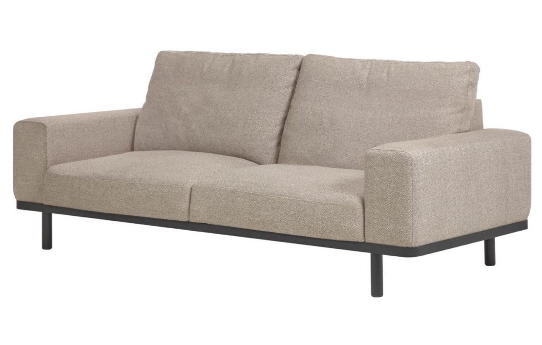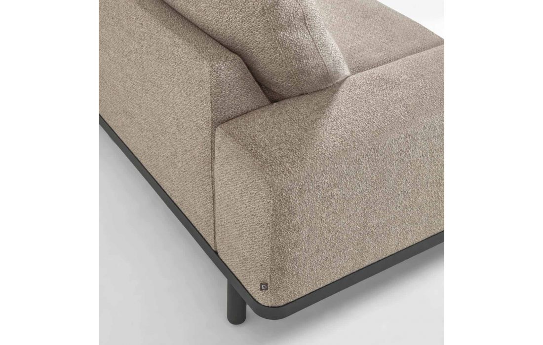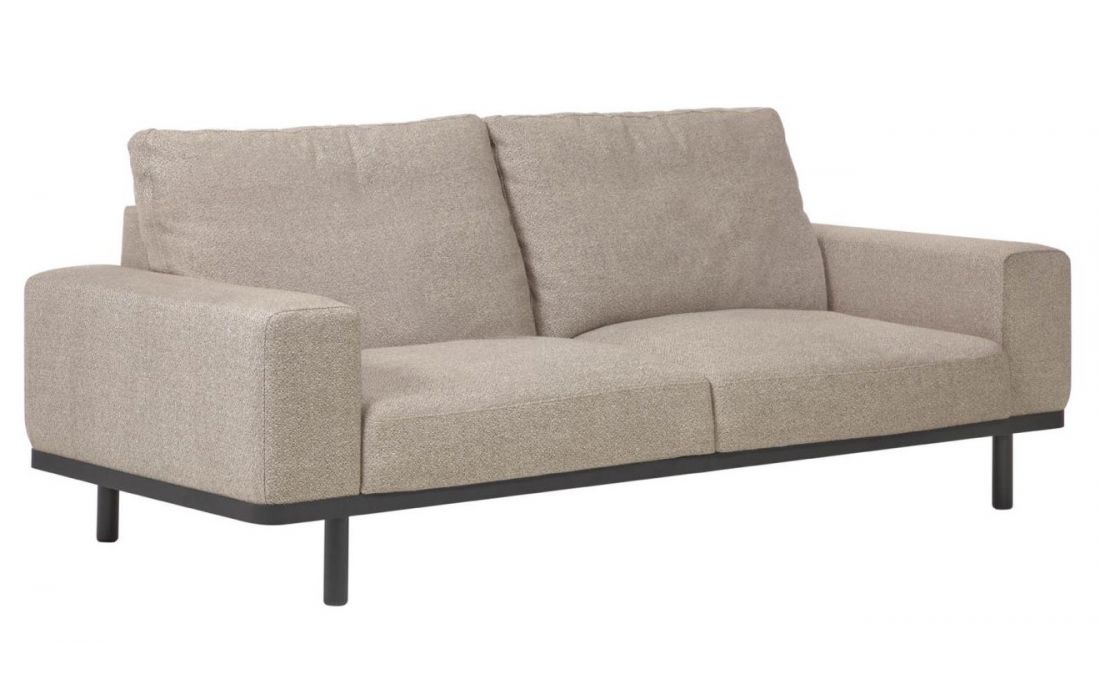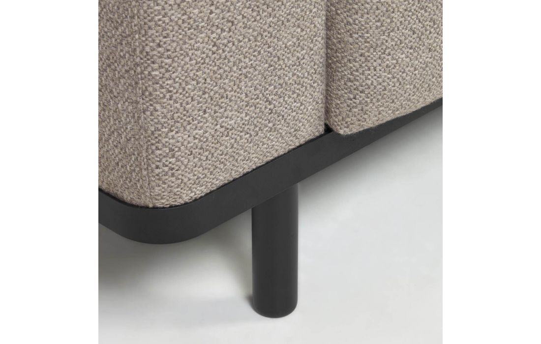 Sofá 3 lugares com base em aço cor preta nos vários revestimentos possíveis.