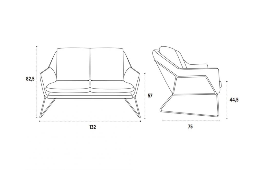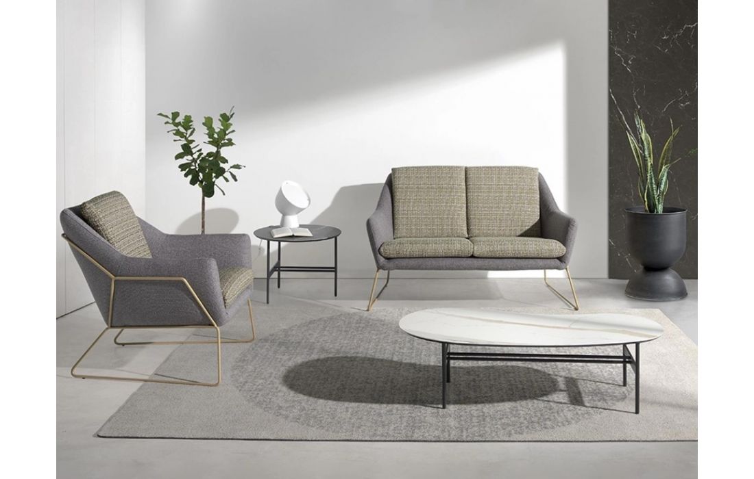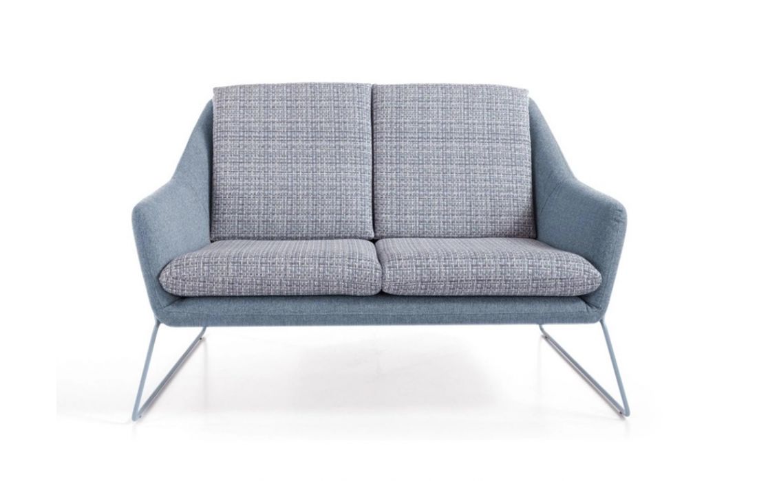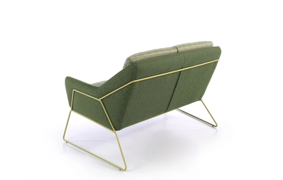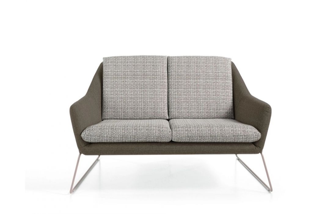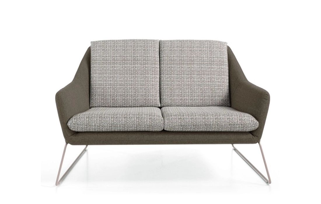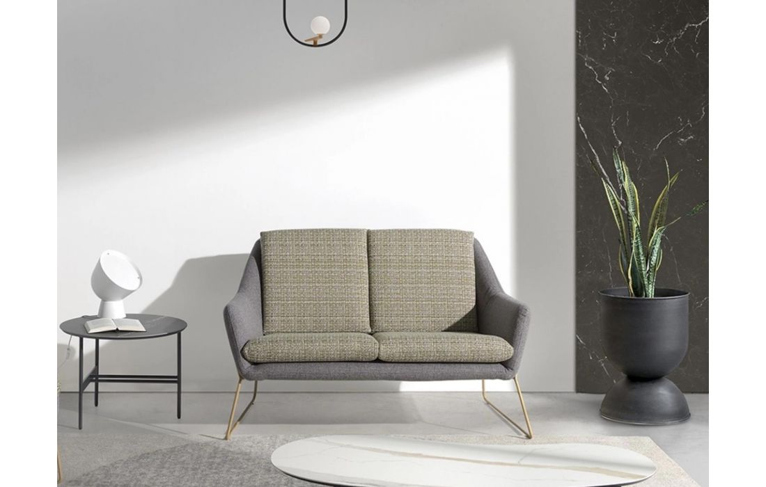 Sofá de 2 lugares com estofo em tecido e pés em metal.