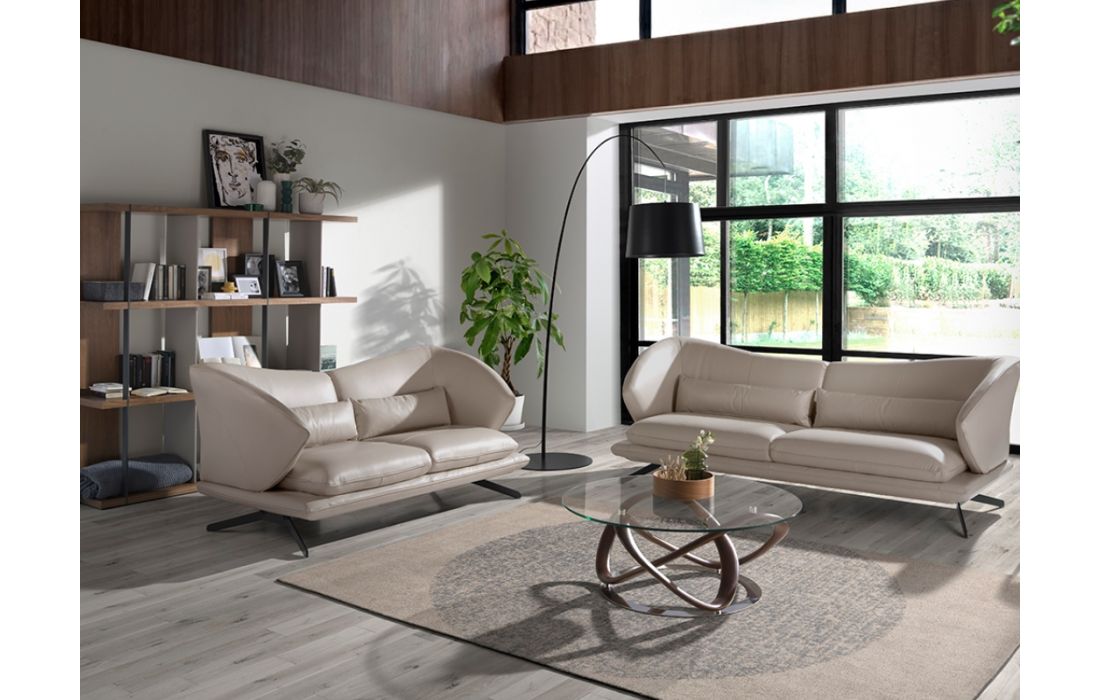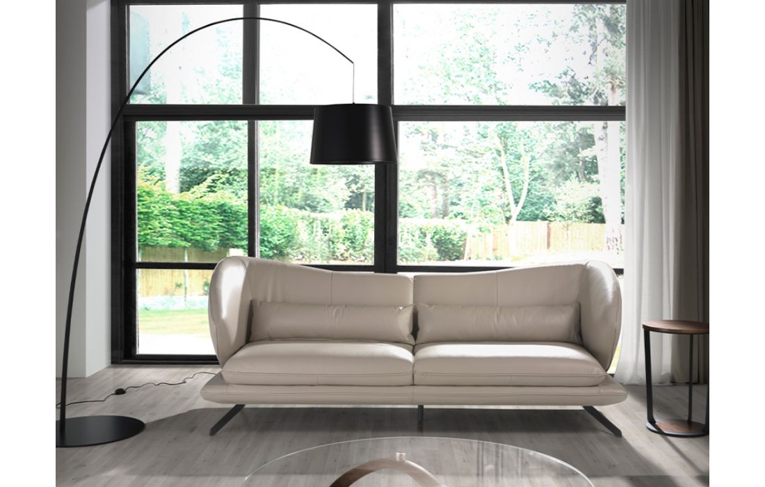Sofá de design moderno, estofado em pele de bovino e as suas pernas em aço inoxidável, este sofá dará o toque de elegância vanguardista que procura em sua casaDestinatário :