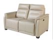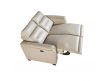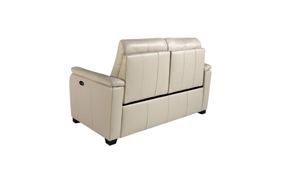 Sofá de 2 lugares estofado em couro marrom conhaque com mecanismos elétricos de relaxamento. Estrutura interna em madeira de pinho natural. Pernas em PVC preto.