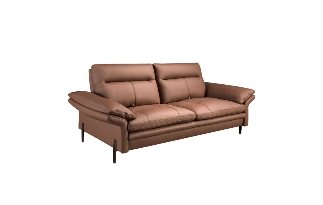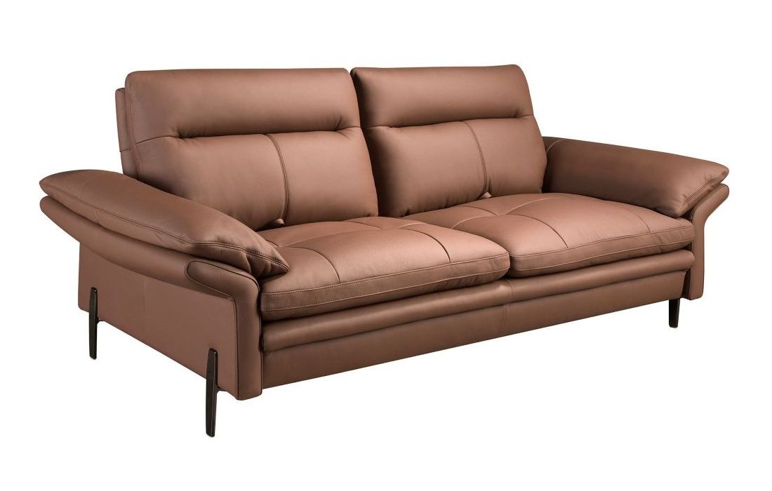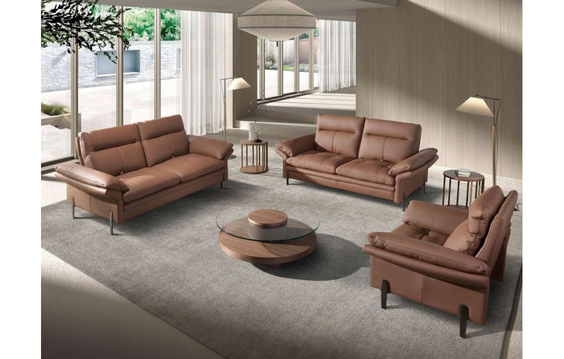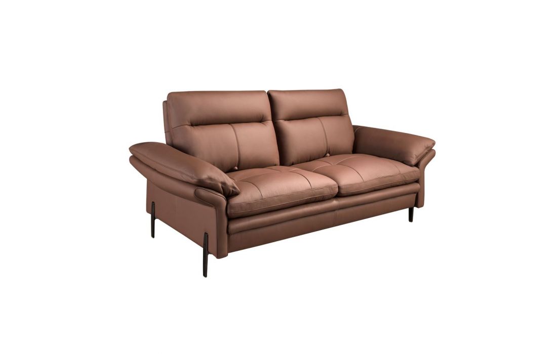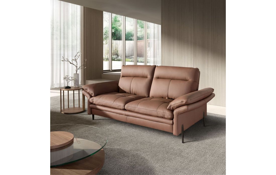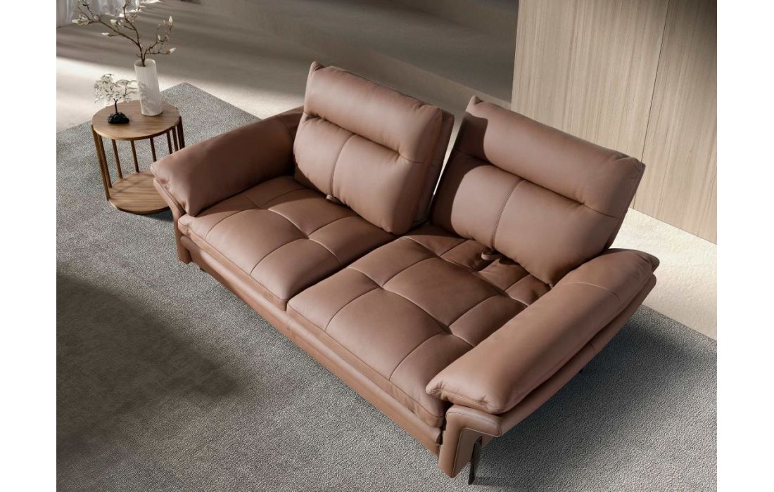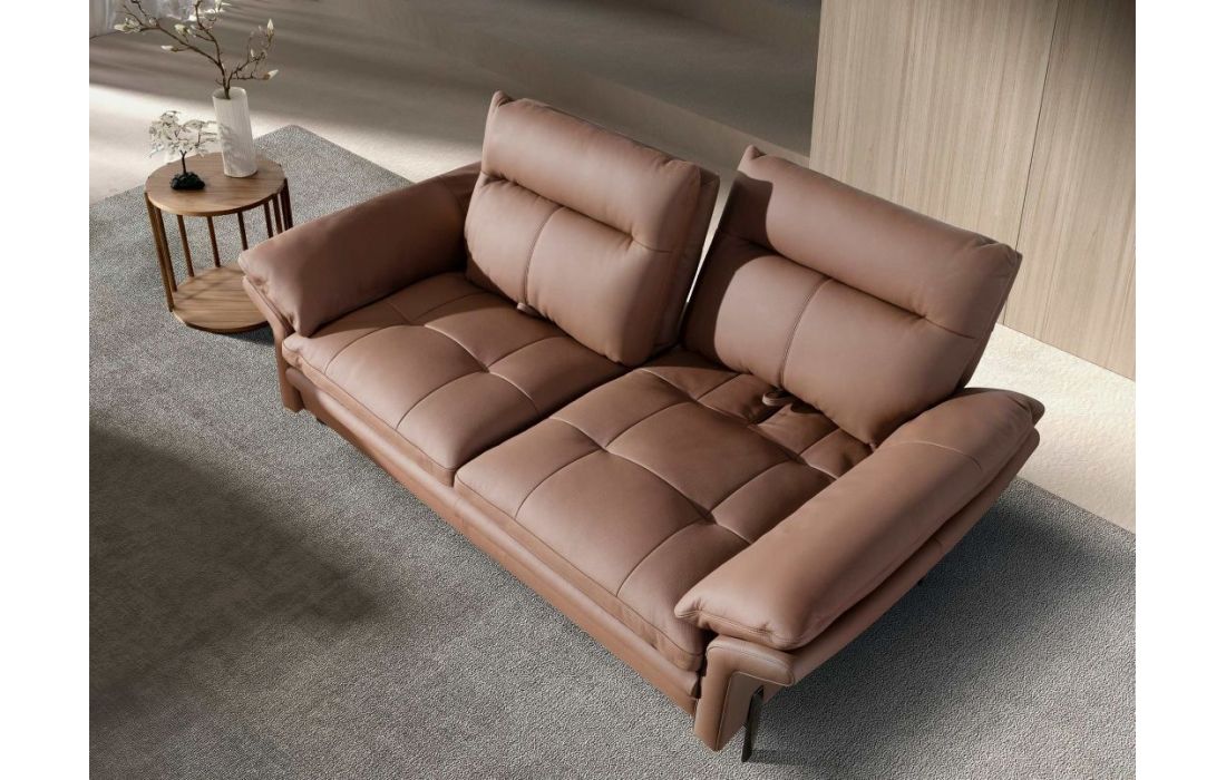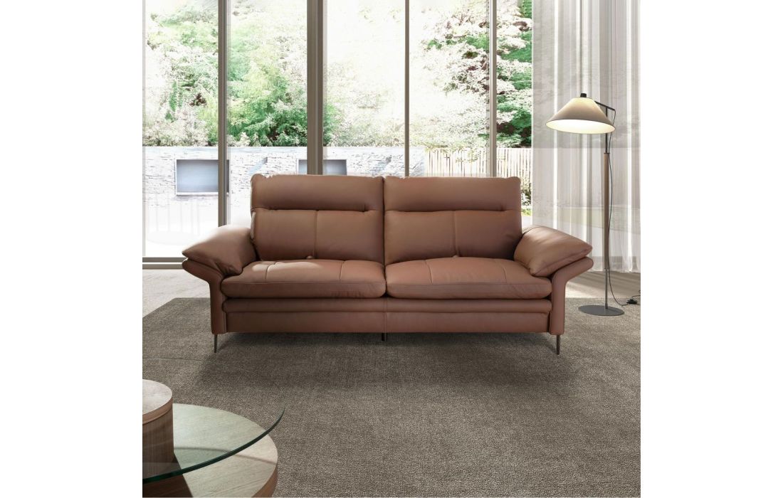 Sofá moderno estofado em pele de bovino e as pernas em aço inoxidável cromado escuro, este sofá irá adicionar o toque de elegância vanguardistaDestinatário :