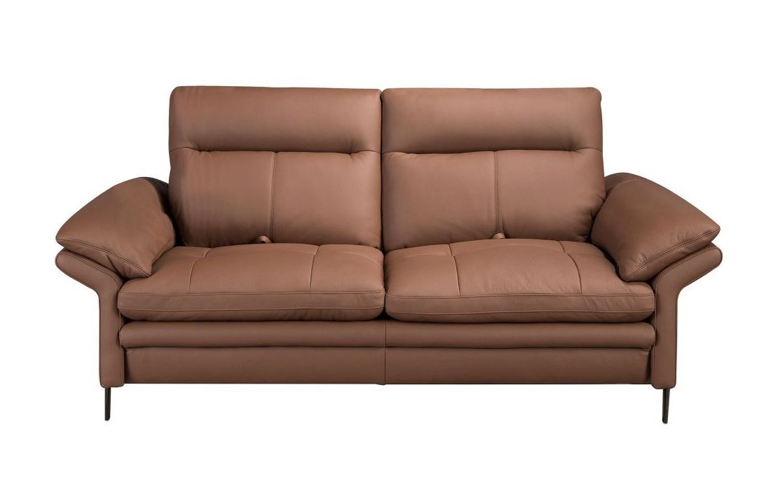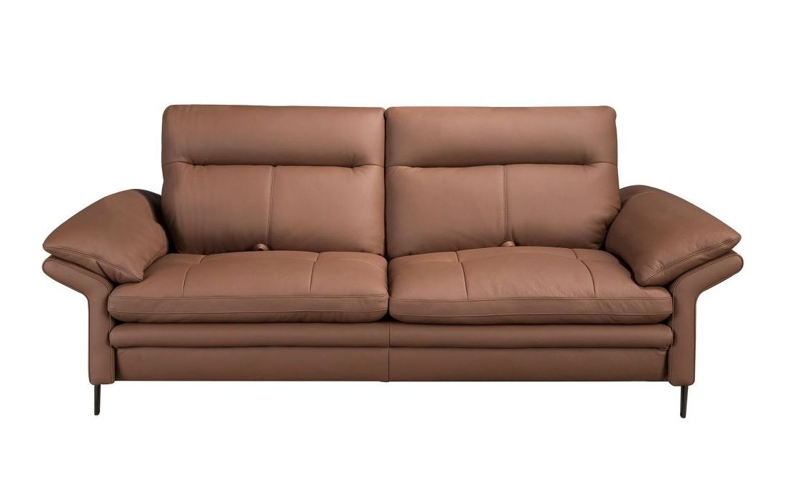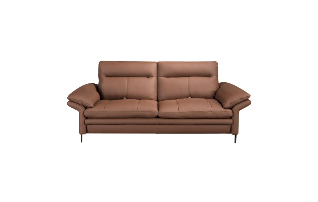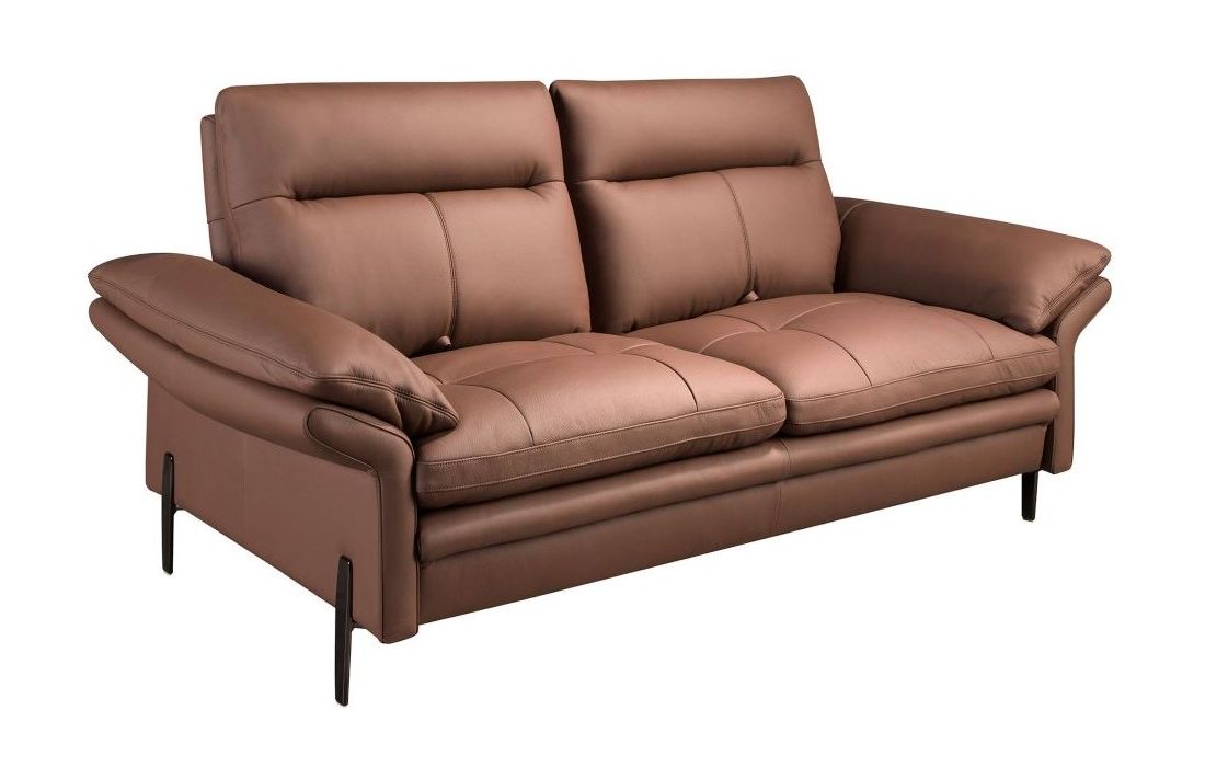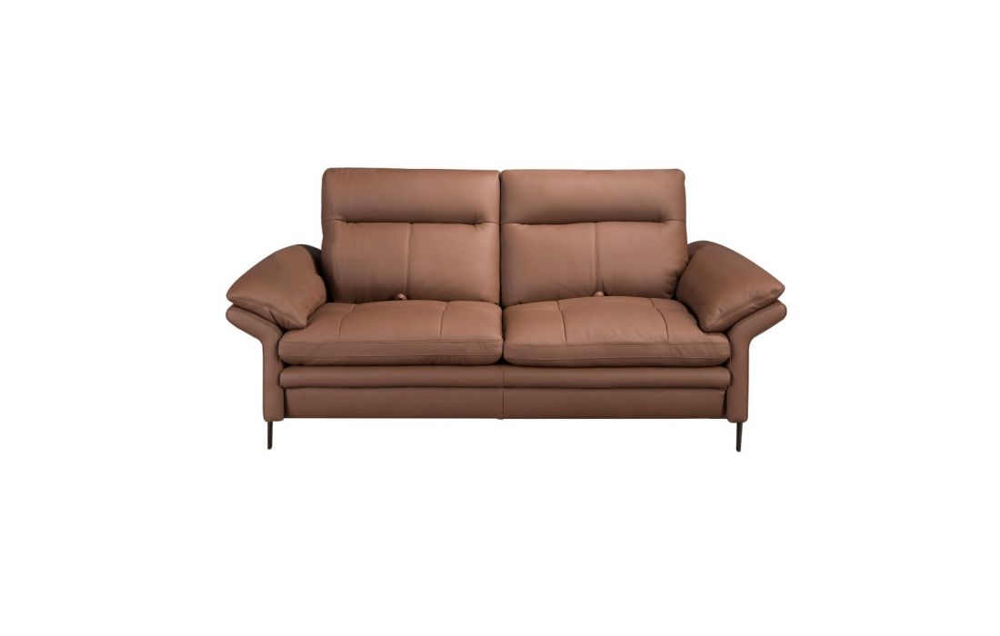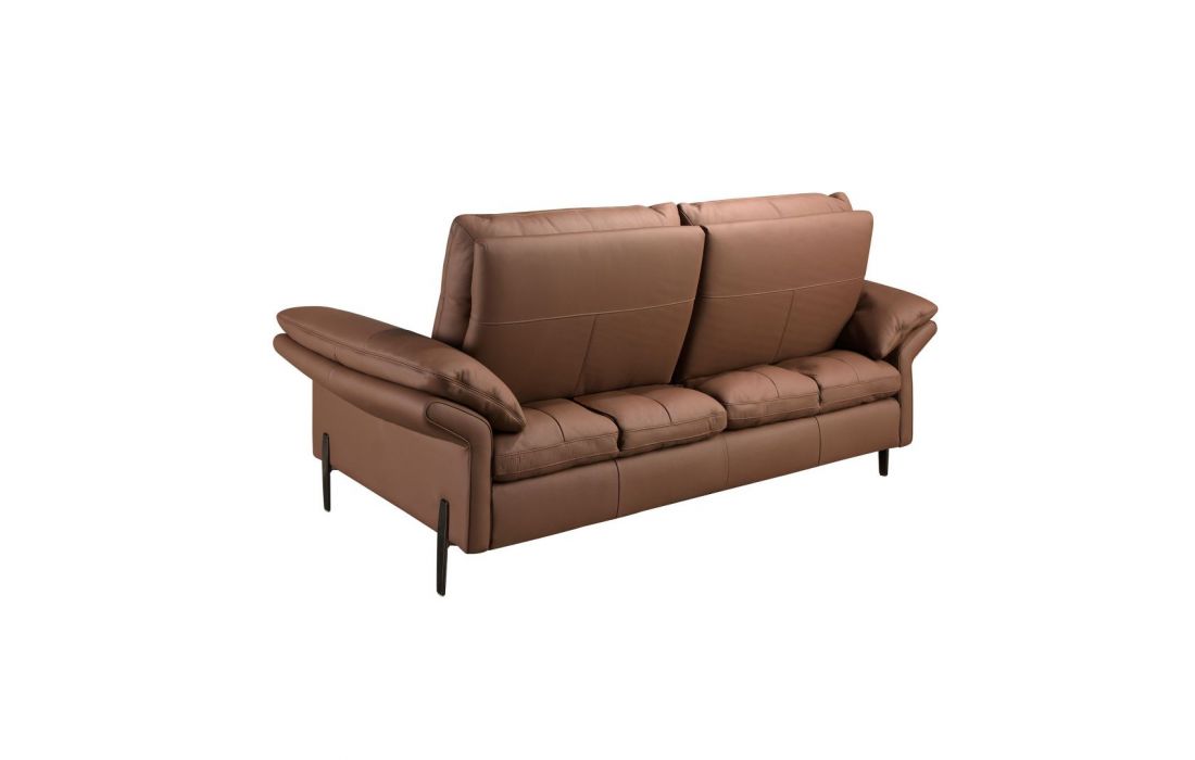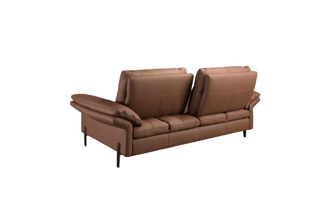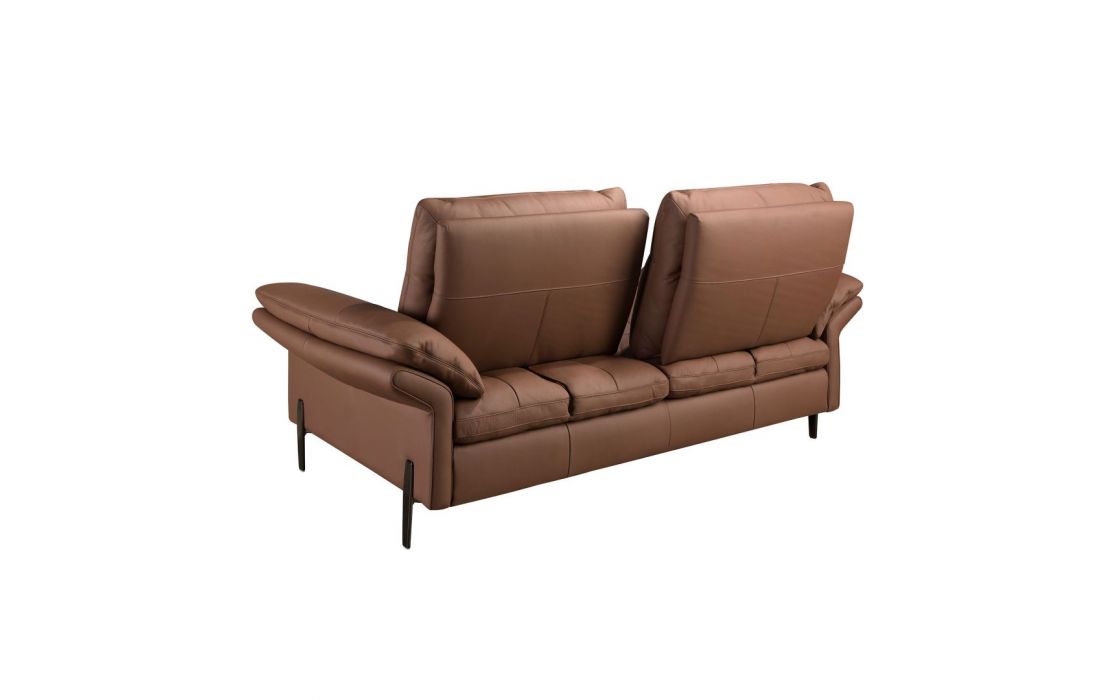 Sofá moderno estofado em pele de bovino e as pernas em aço inoxidável cromado escuro, este sofá irá adicionar o toque de elegância vanguardistaDestinatário :