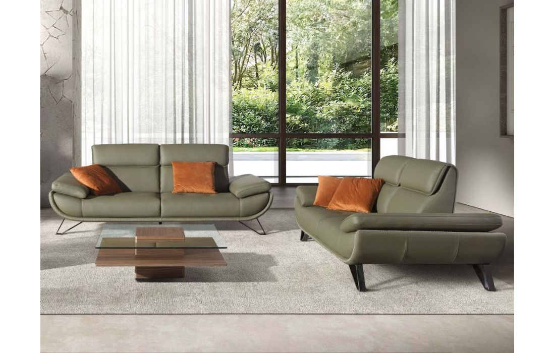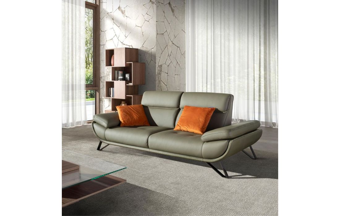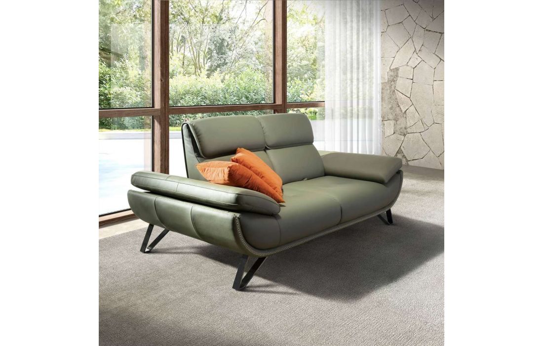 Sofá estofado em pele de bovino e pernas em aço inoxidável cromado escuro, este sofá irá adicionar o toque de elegância vanguardistaDestinatário :