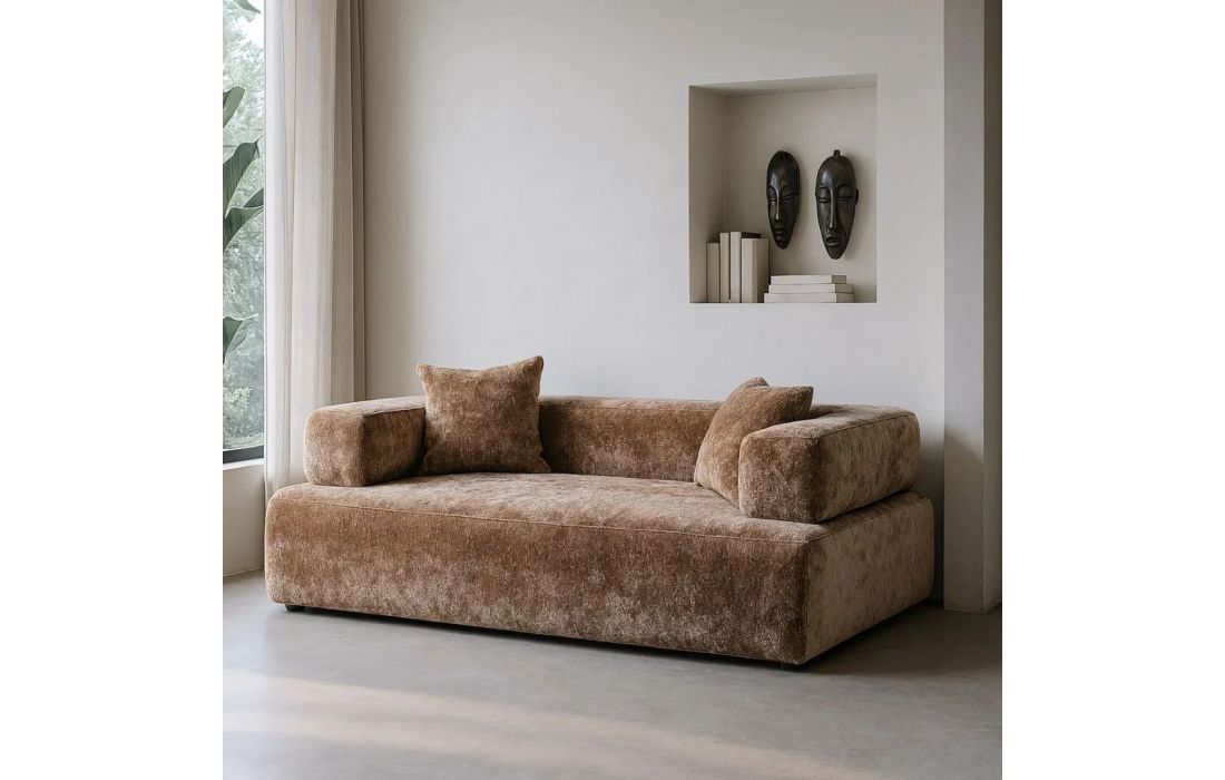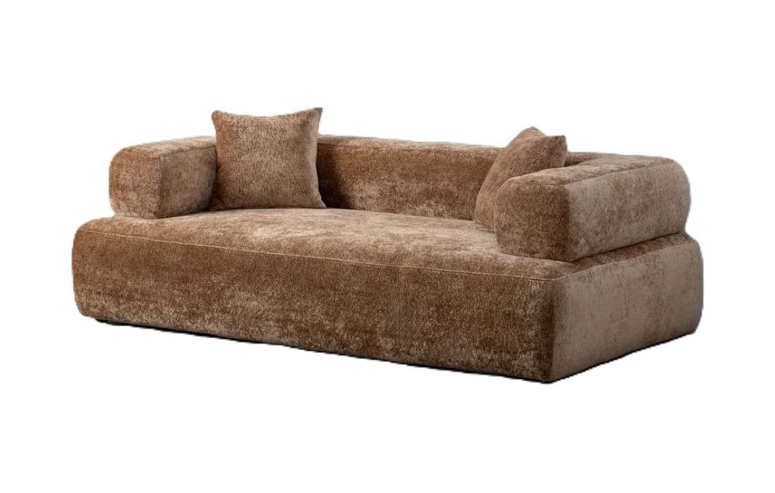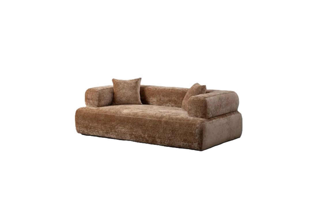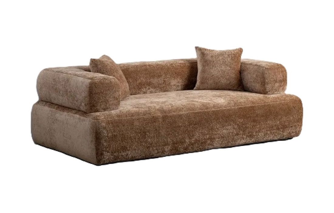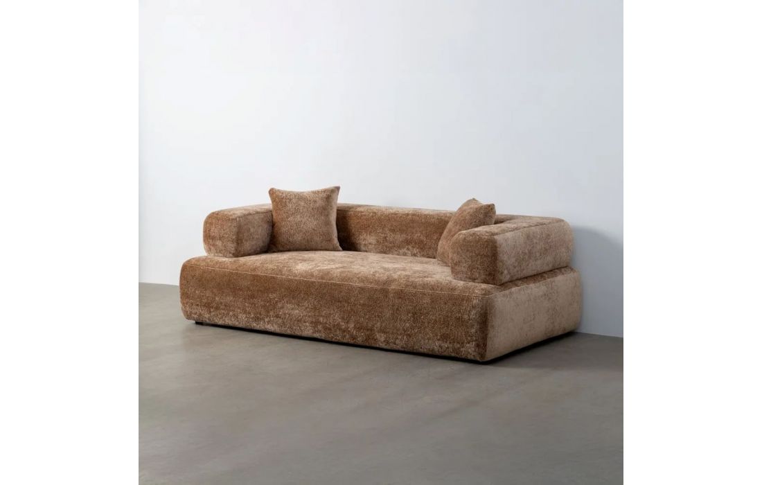 Sofá com estrutura em madeira de pinho e estofada em tecido, com design simples e modernoDestinatário :