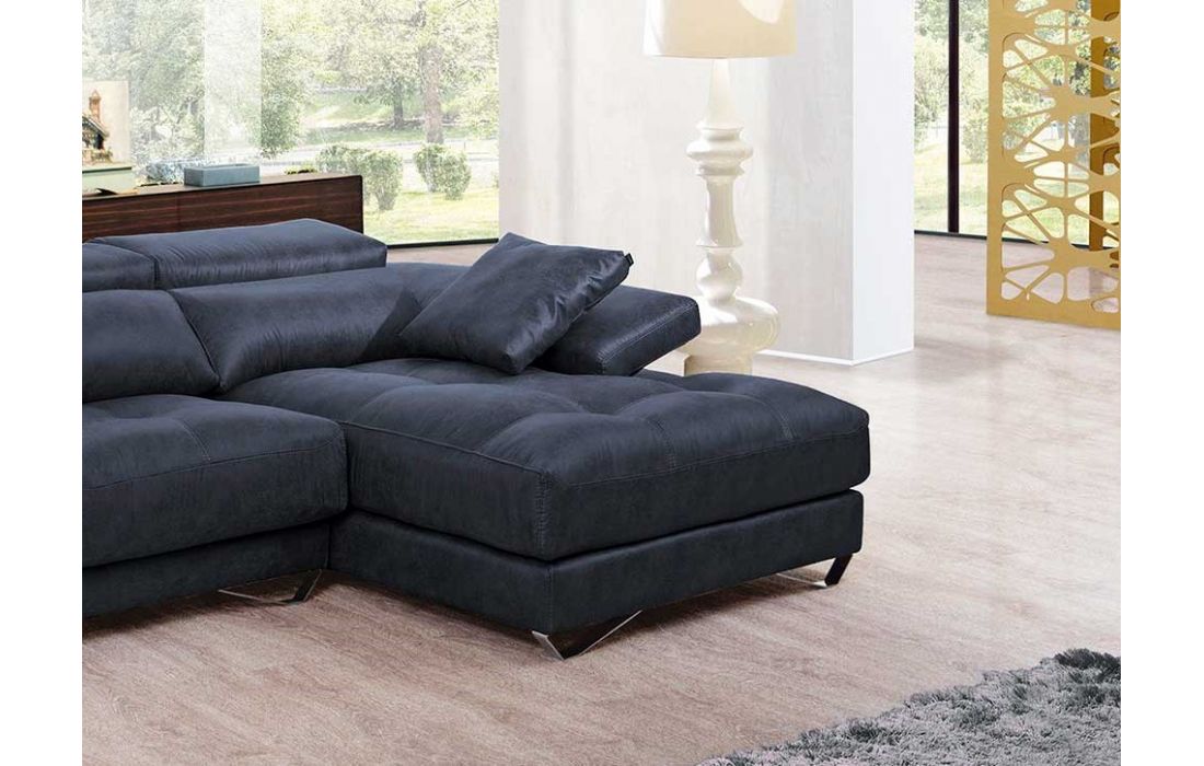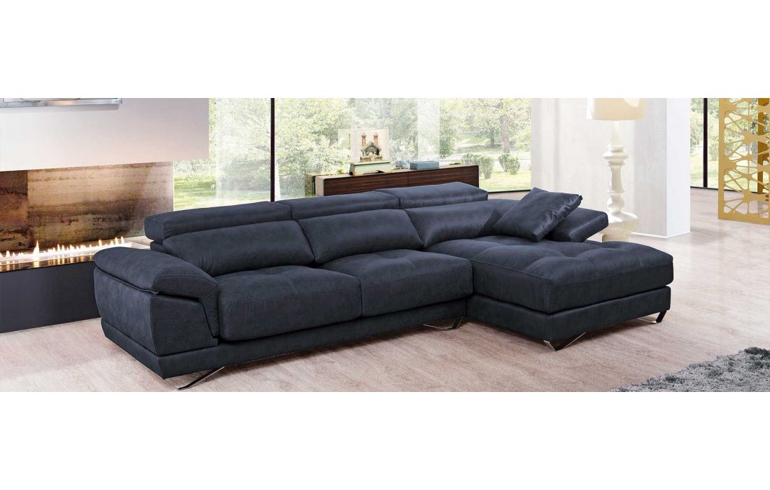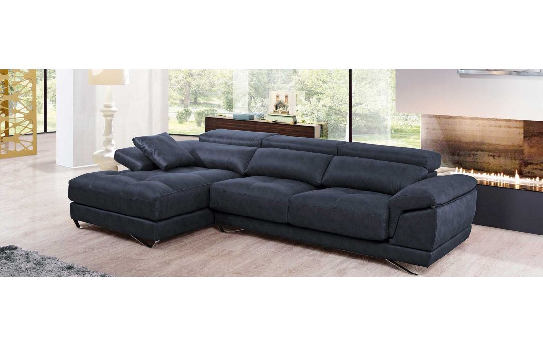 Sofá 3L c/ chaiselong em tecido ou pele sintética