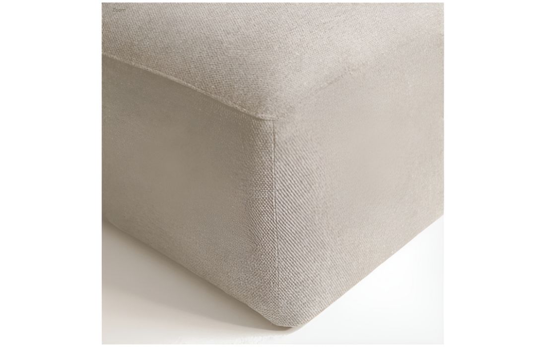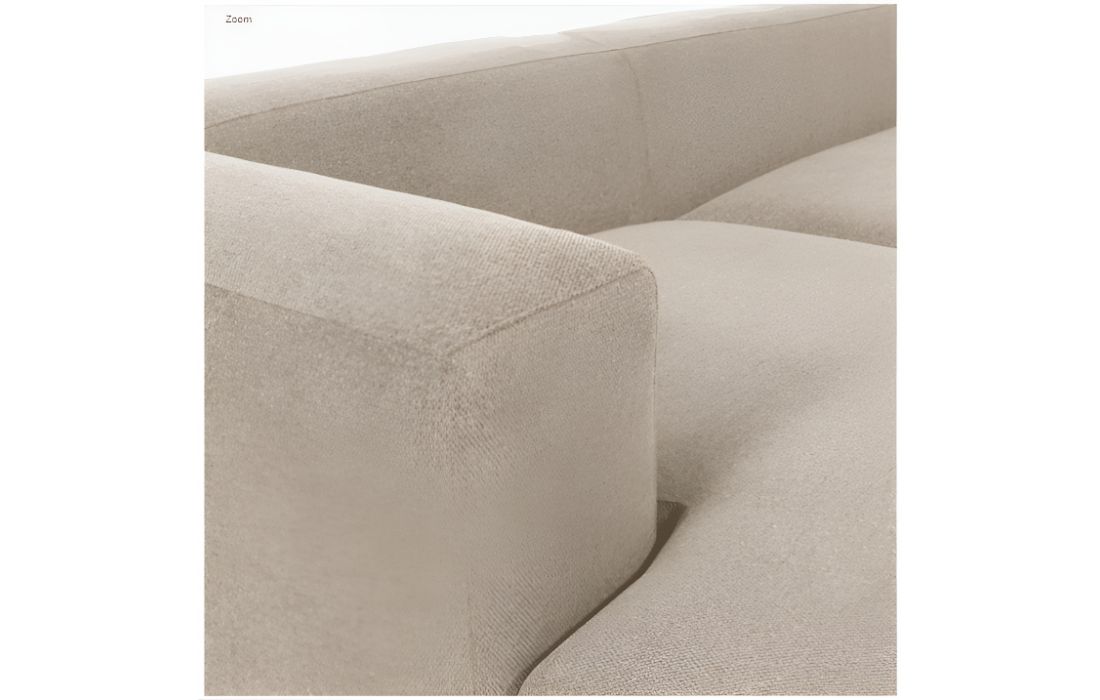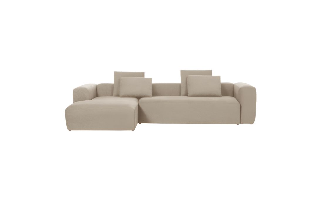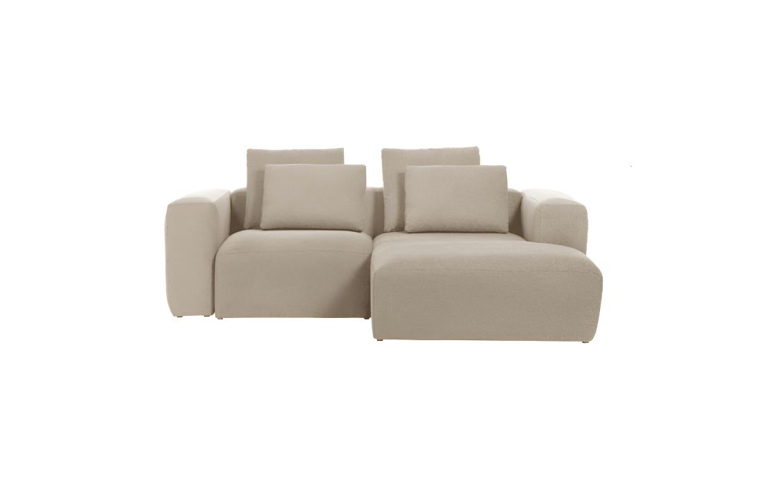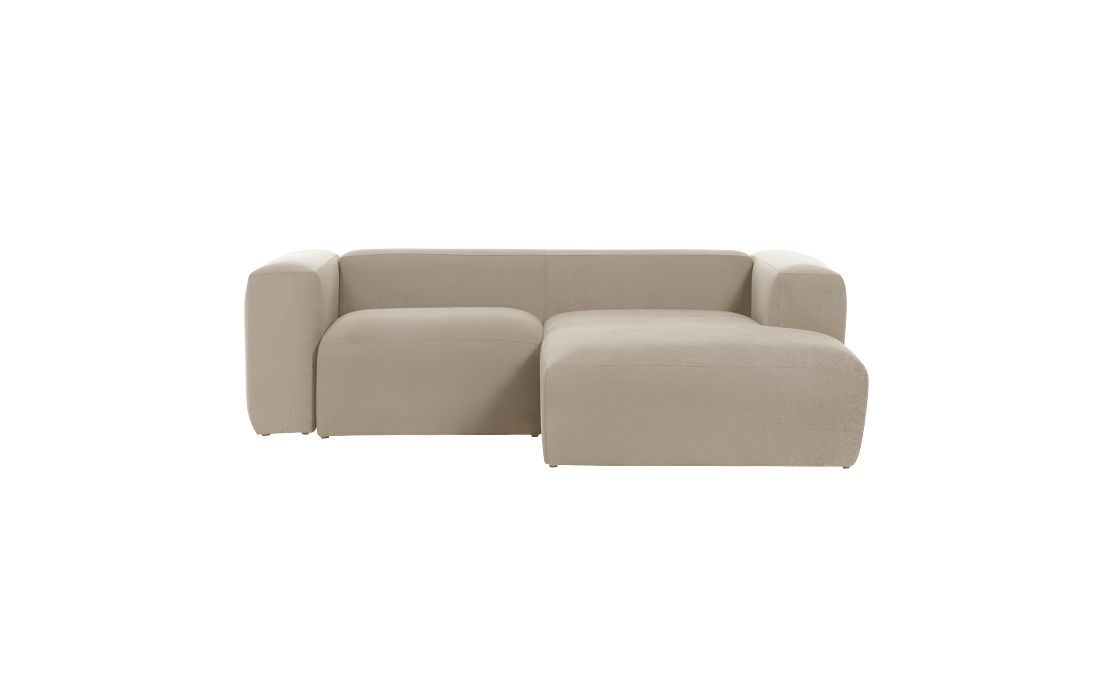 Sofá com chaiselong, estrutura em madeira de pinho e tecido na cor bege