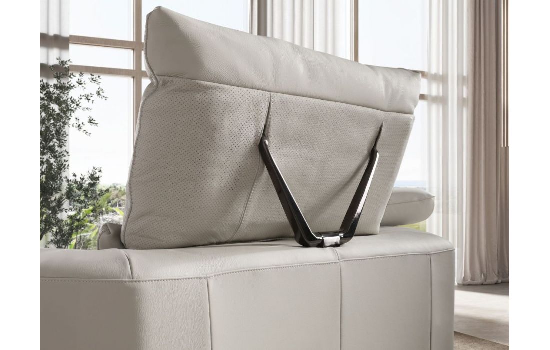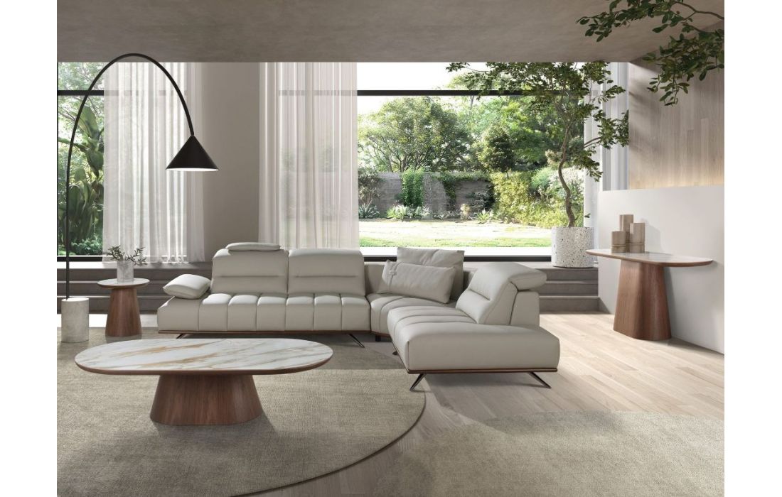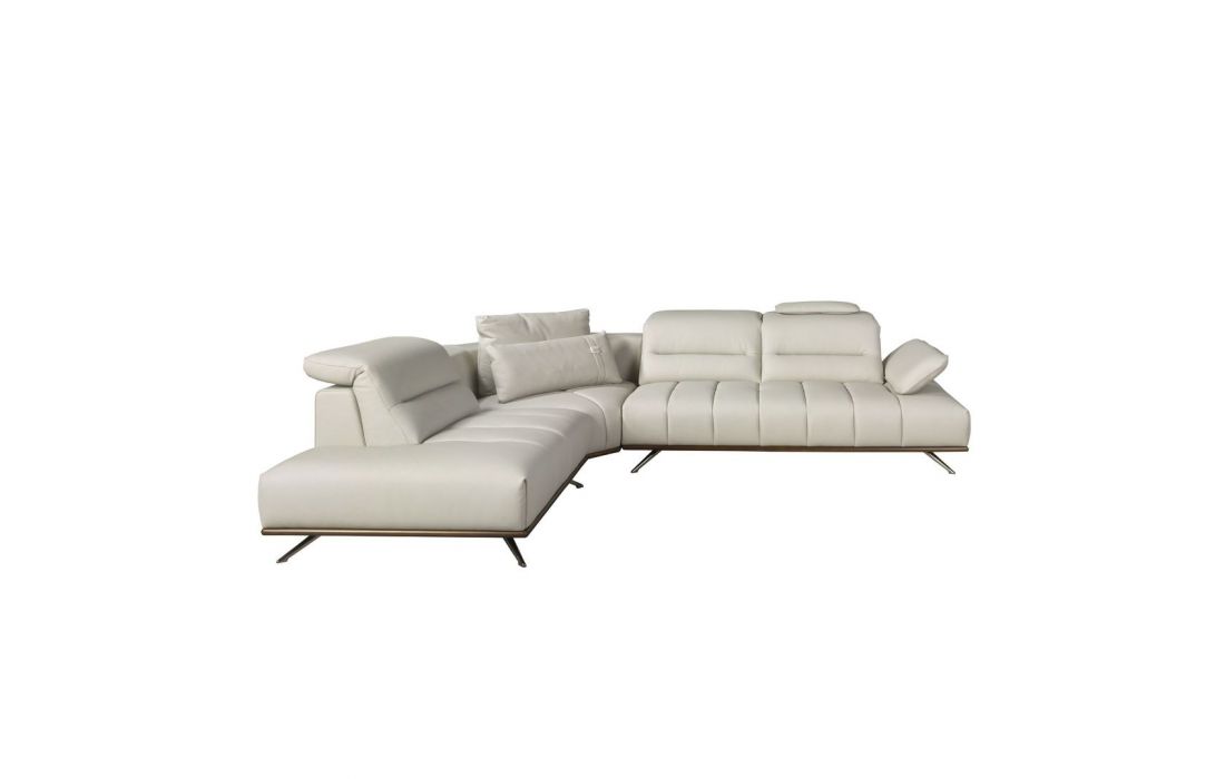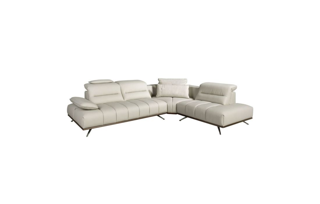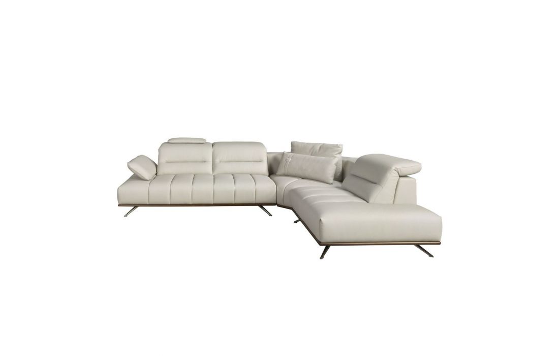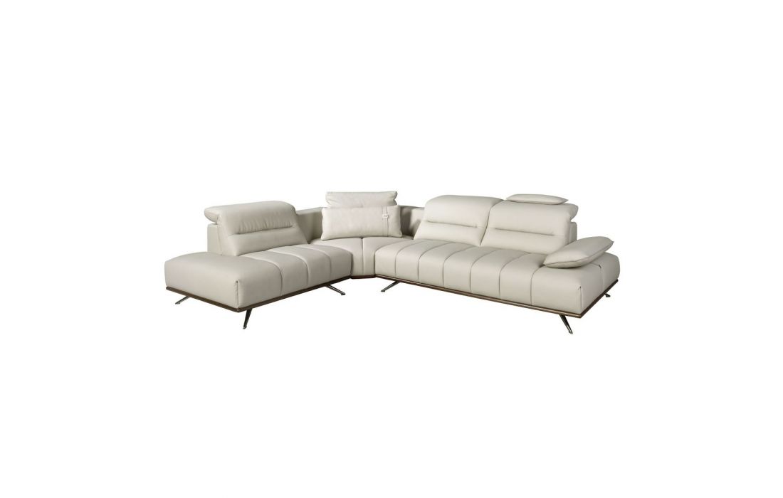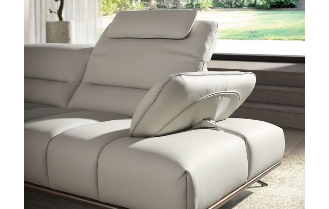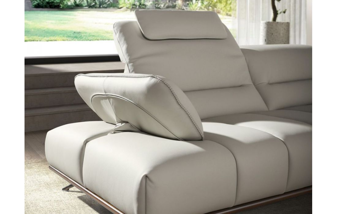 Sofá com chaiselongue de 5 lugares, estofado em pele de bovino, com apoio de cabeça para maior conforto, acabamento em madeira de nogueira escura e pernas em aço inoxidável cromado escuro, este sofá irá adicionar o toque de elegância vanguardista que procura em sua casaDestinatário :