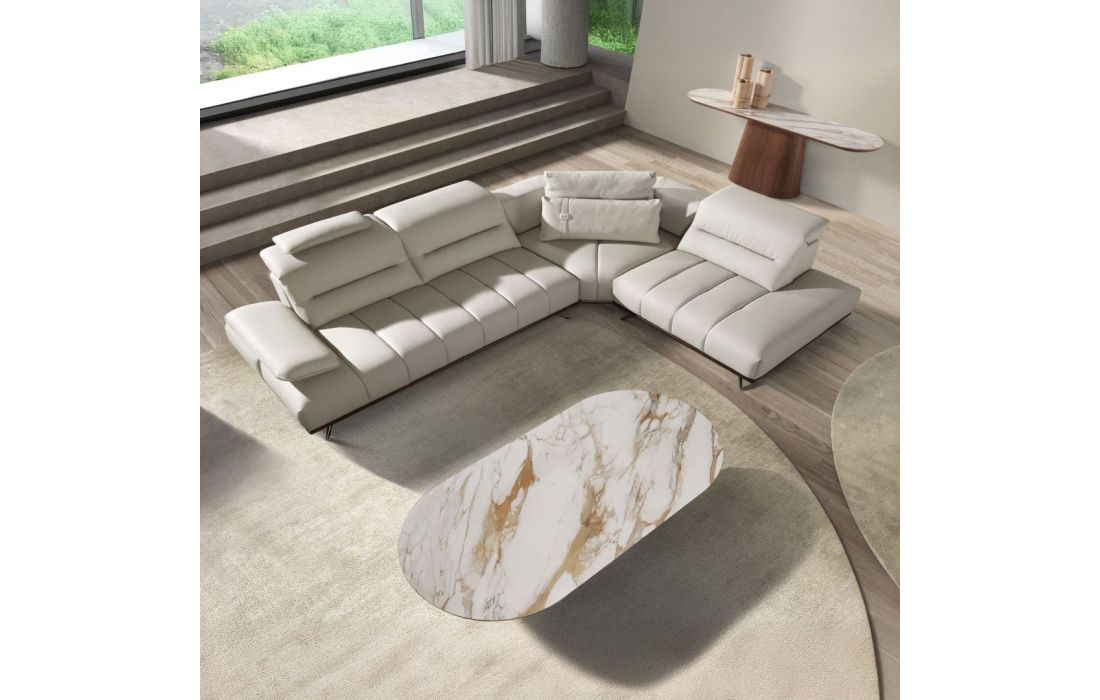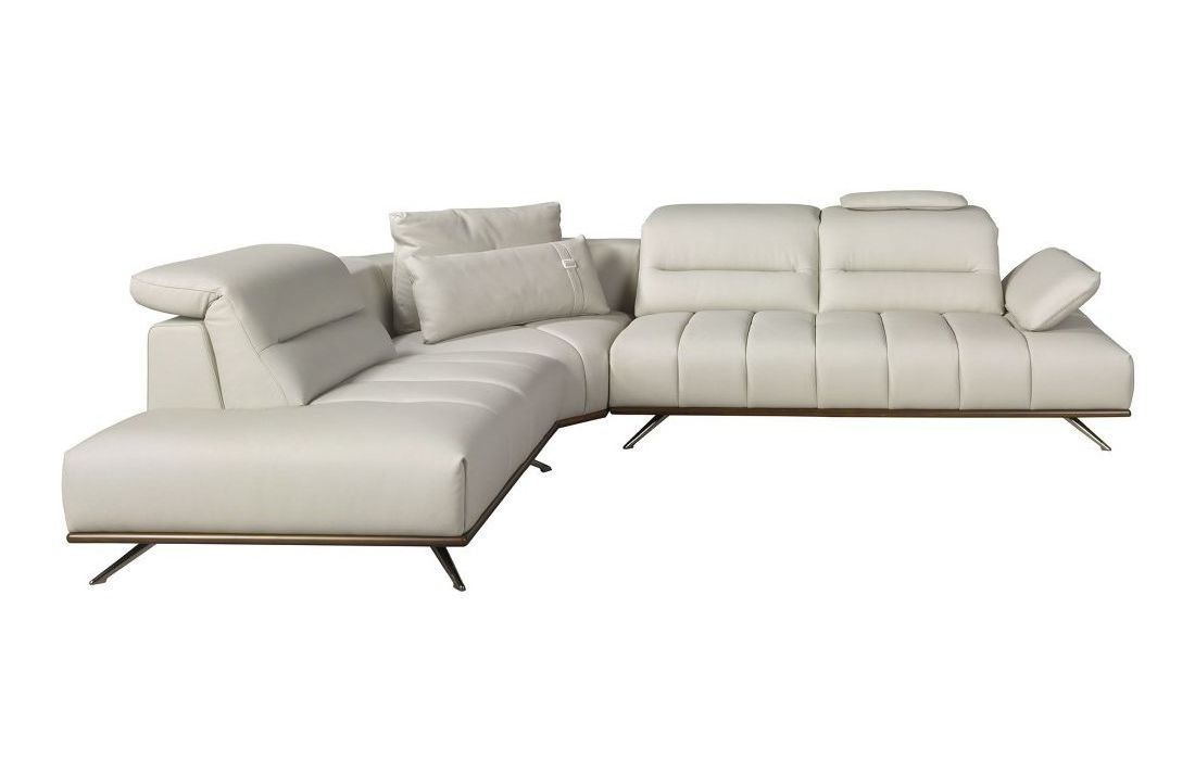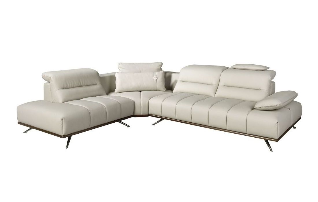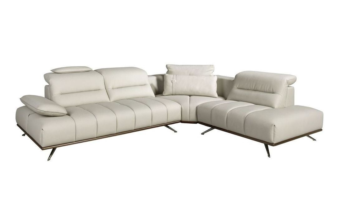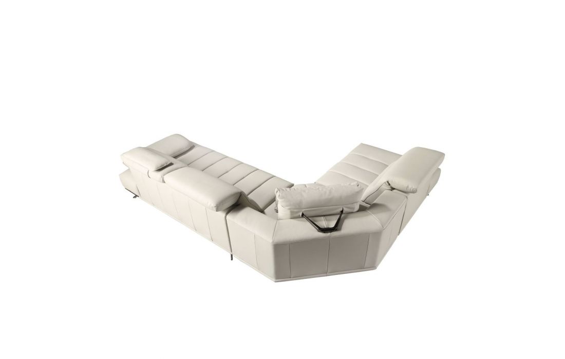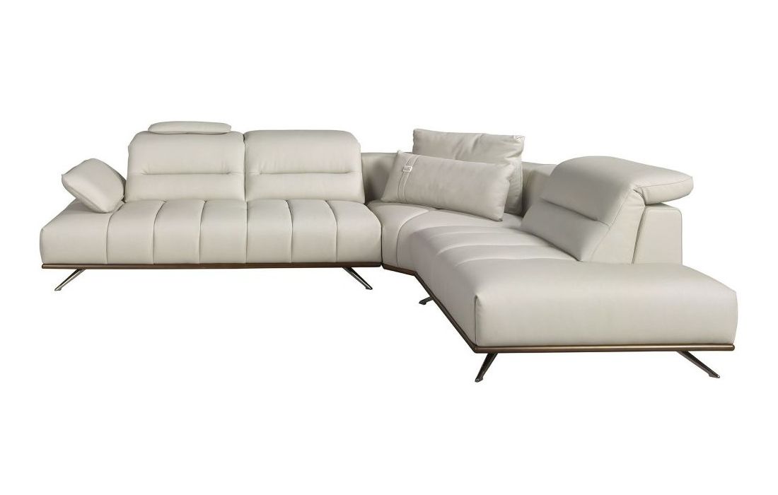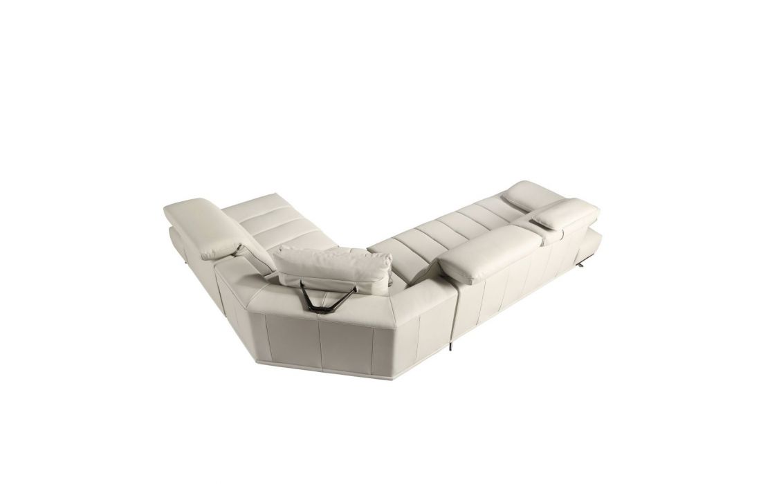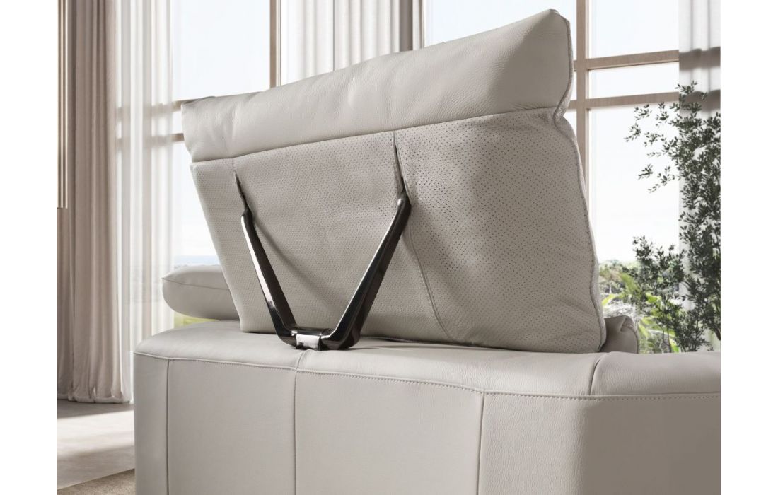 Sofá com chaiselongue de 5 lugares, estofado em pele de bovino, com apoio de cabeça para maior conforto, acabamento em madeira de nogueira escura e pernas em aço inoxidável cromado escuro, este sofá irá adicionar o toque de elegância vanguardista que procura em sua casaDestinatário :