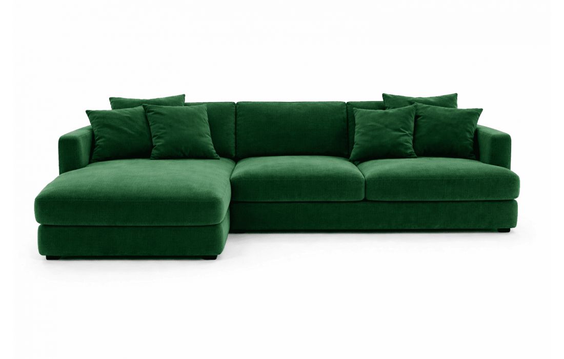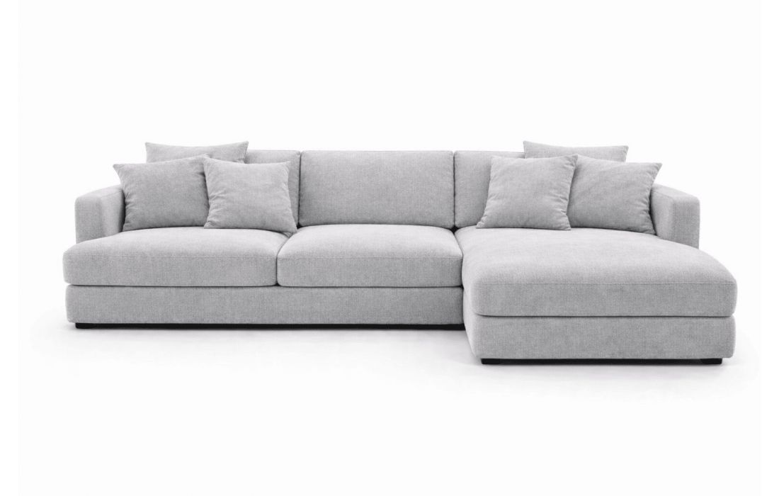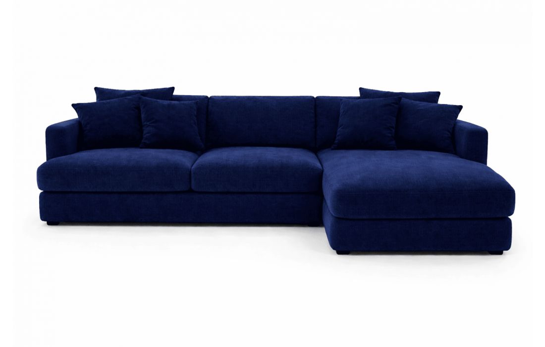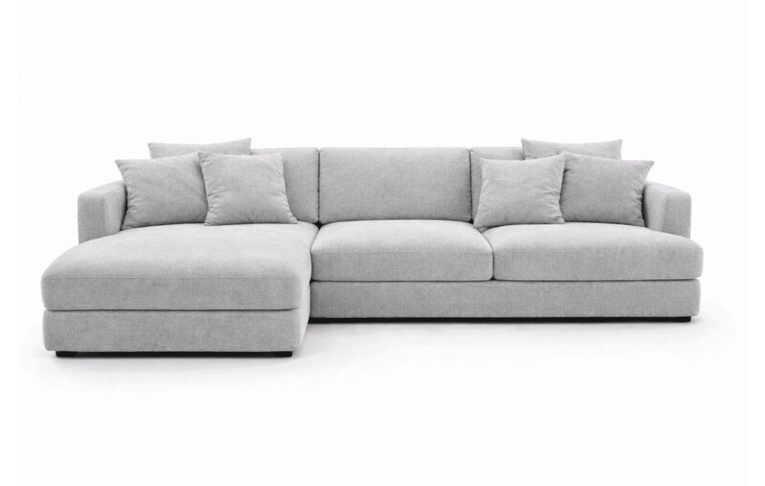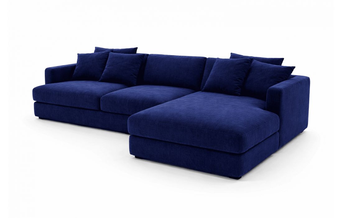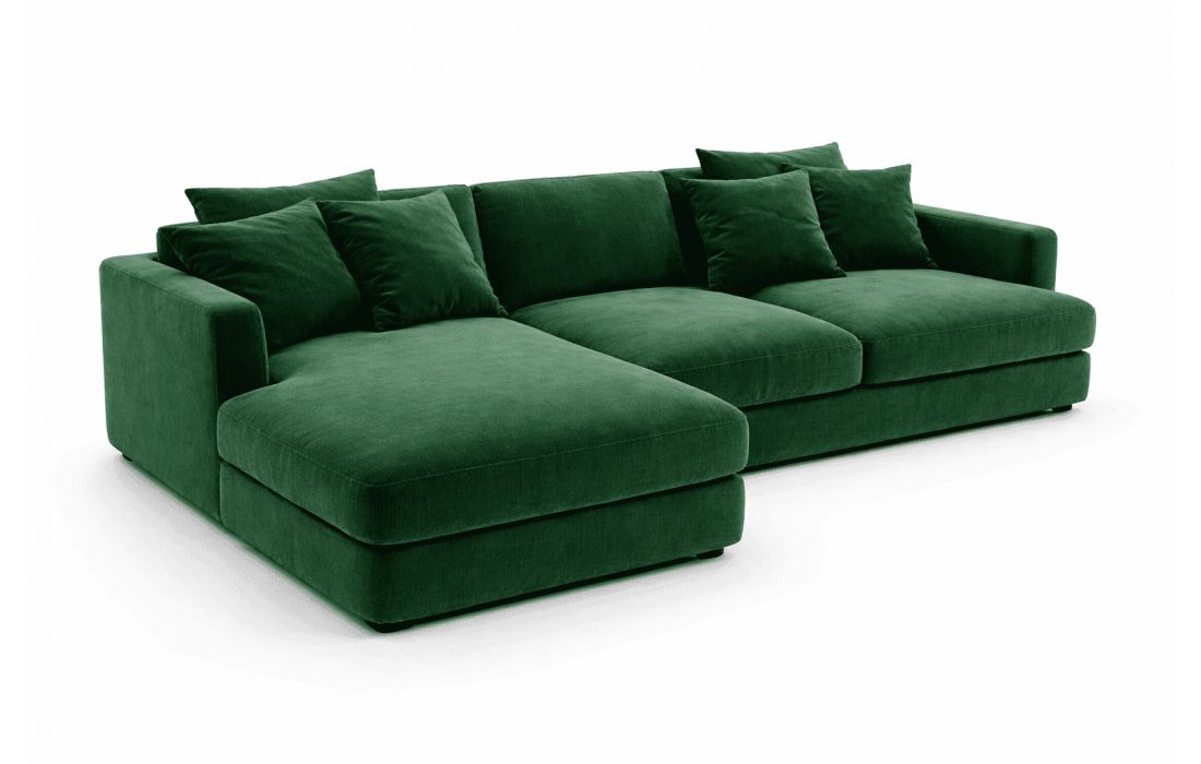 Sofá com chaise longue de design moderno, ideal para ambientes contemporâneos e minimalistas.