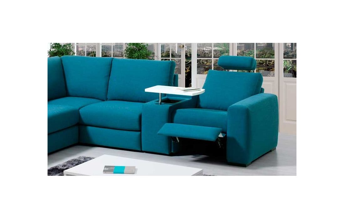 Módulo mesa com sistema elevatório e giratório.Com espaço arrumação e carregador com USB no interior.