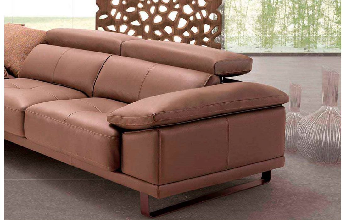 Especificações do Produto Revestimento em tecido, pele sintética e pele genuína Estrutura em madeira e metal Largura do braço 28 cm Espumas de 1ª qualidade Almofadas dos assentos com espuma HR 35 KG c/ uma camada de viscoelastica Apoios de cabeça reclinaveiscom altura até 70cm abatido Pés metálicos