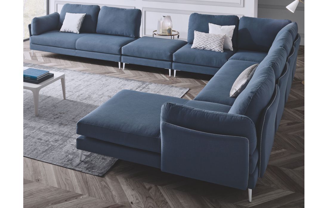 Sofá de canto nos vários revestimentos possíveis.Base em inox polido.Dimensões em cm / PreçoSofá de Canto (C) 276 x (P) 234 (A) 85 - 2.278,00€Notas:-A medida de 234 corresponde ao lado do "Elemento que termina com chaiselong"-Profundidade 100Prazo de Entrega30 a 45 dias