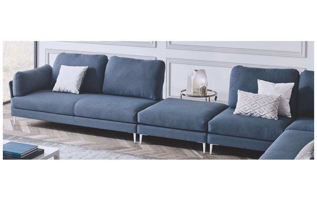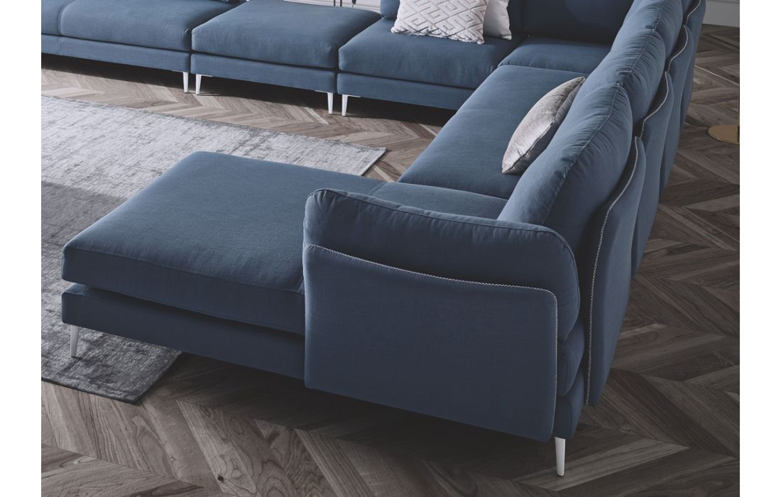 Sofá de canto nos vários revestimentos possíveis.Base em inox escovado.Dimensões em cm / PreçoSofá de Canto (C) 406 x (P) 240 (A) 85 - 3.769,00€Notas:-A medida de 240 corresponde ao lado do "Elemento que termina com chaiselong"-Profundidade 100Prazo de Entrega30 a 45 dias
