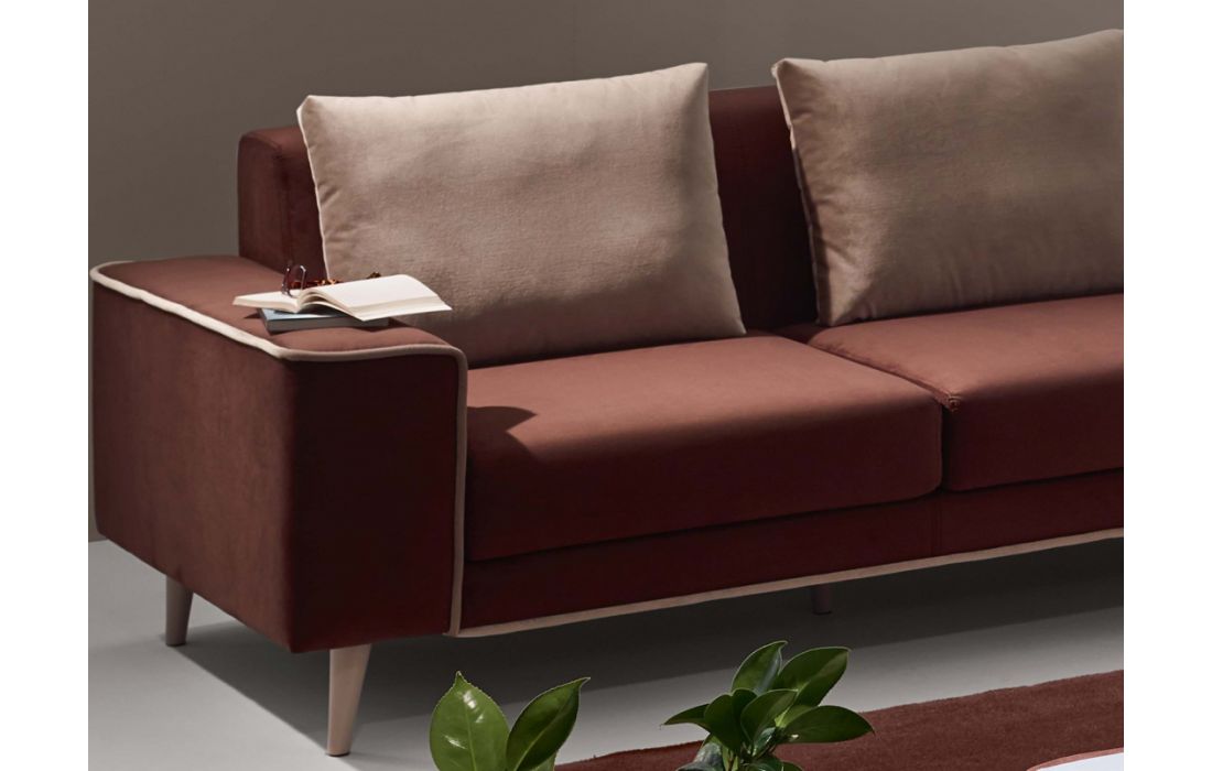 Estrutura: Madeira Revestimentos possíveis: Tecido, pele sintética e pele genuína Precintas: Com alto teor de borracha e elevada elastecidade Interior: Interior c/ espumas de poliuretano alta resiliencia (assento) e no restante materias primas de 1ª qualidade Pés: Madeira