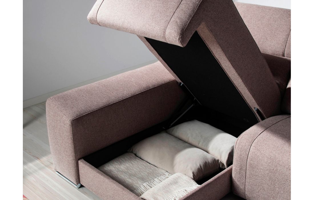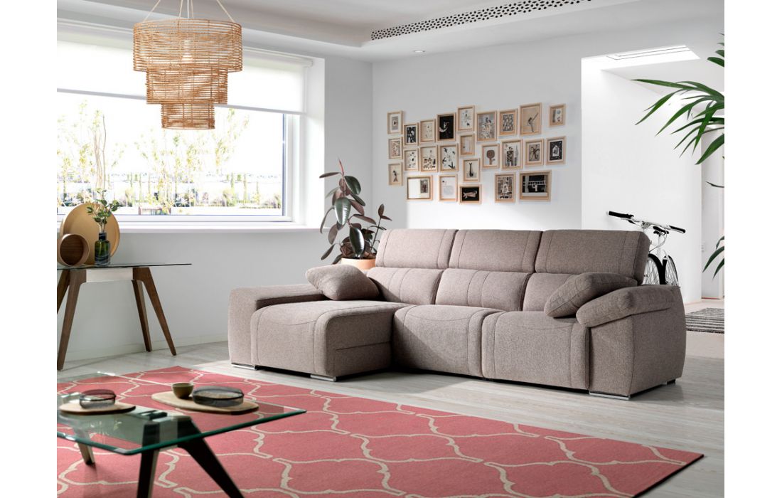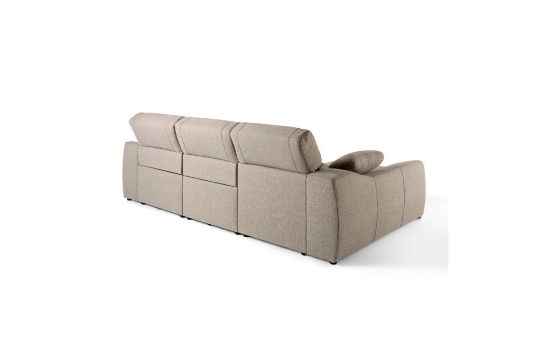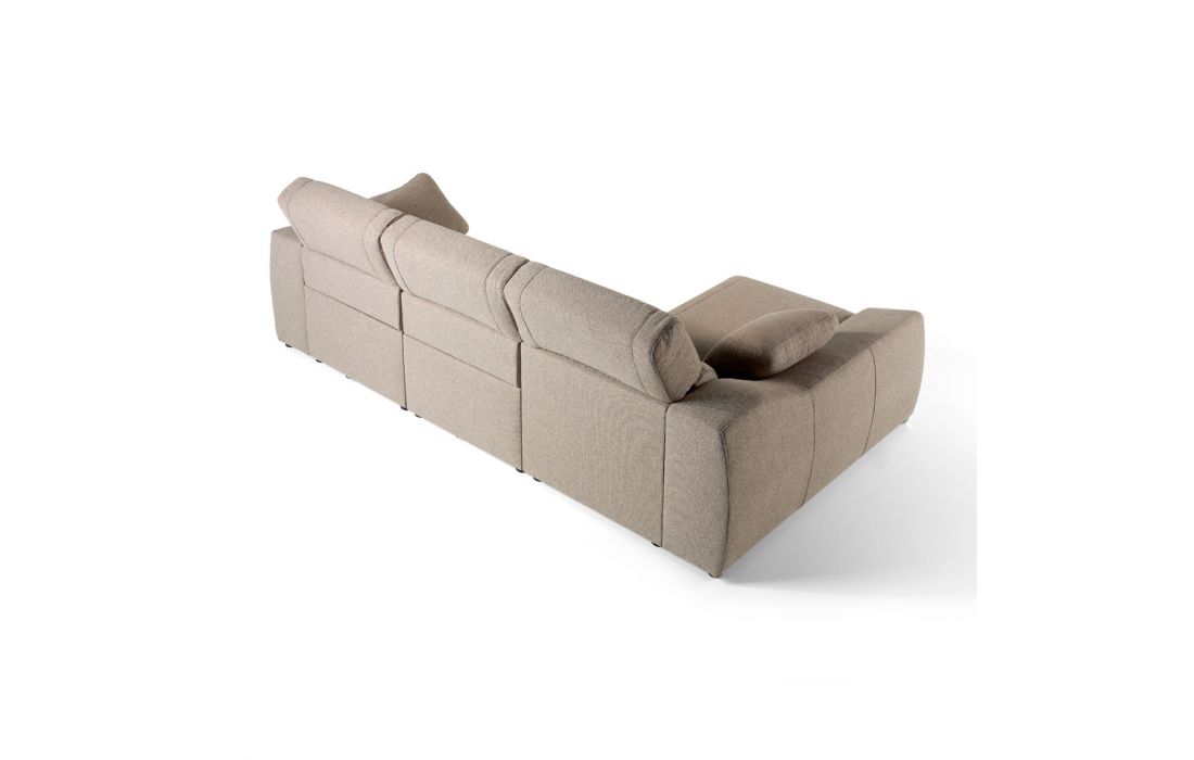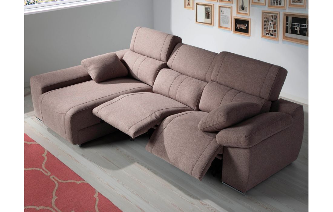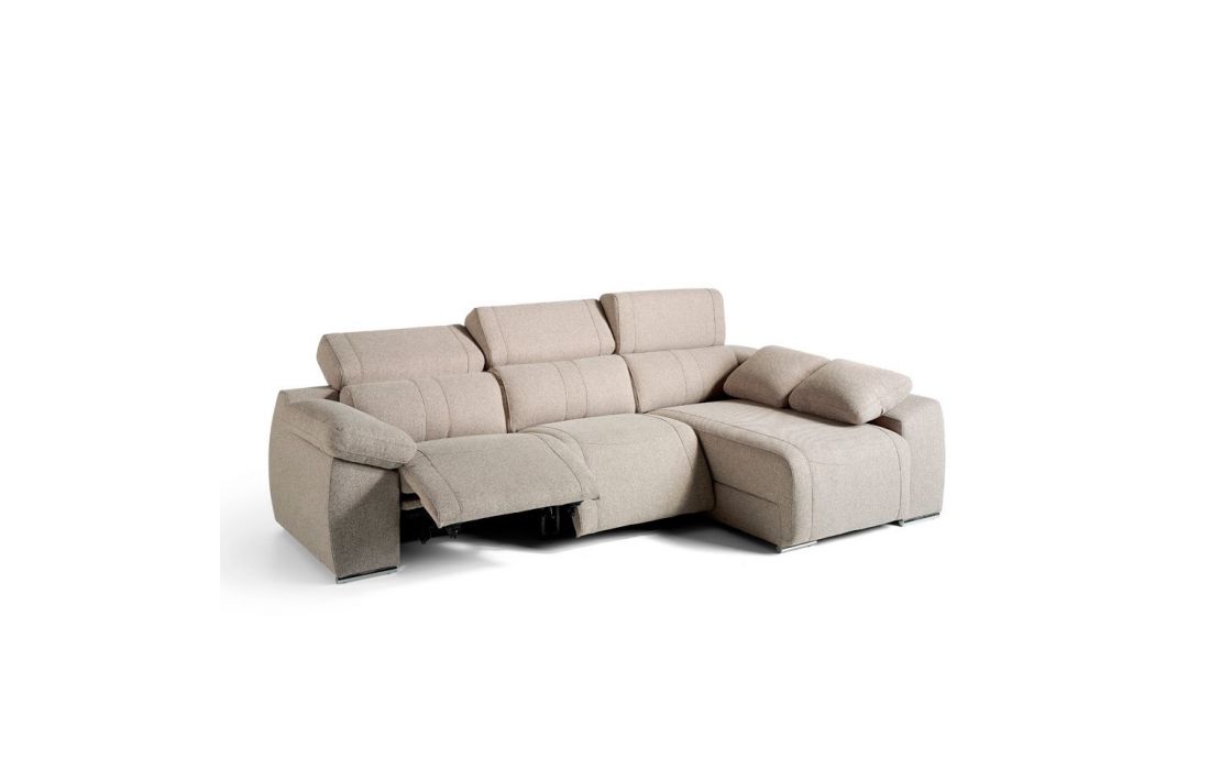 Sofá com chaise lounge estofado. Encostos de cabeça dobráveis com diferentes posições. Dois assentos com mecanismos de relaxamento elétricos reclináveis. Chaise lounge com mecanismo de caixa de armazenamento dobrável. Braço com caixa de armazenamento.Destinatário :