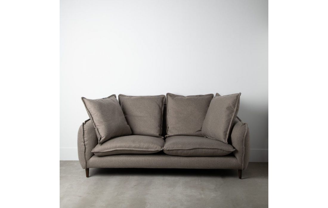 Sofá em tecido 100% poliéster e estrutura em madeira.Dimensões em cm