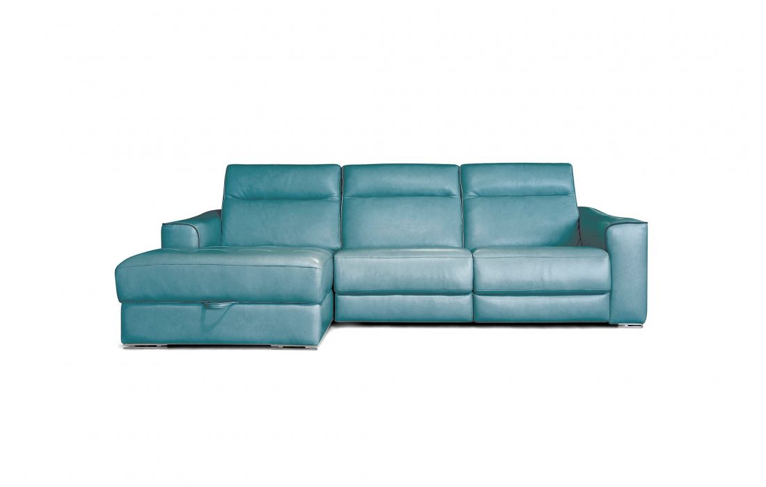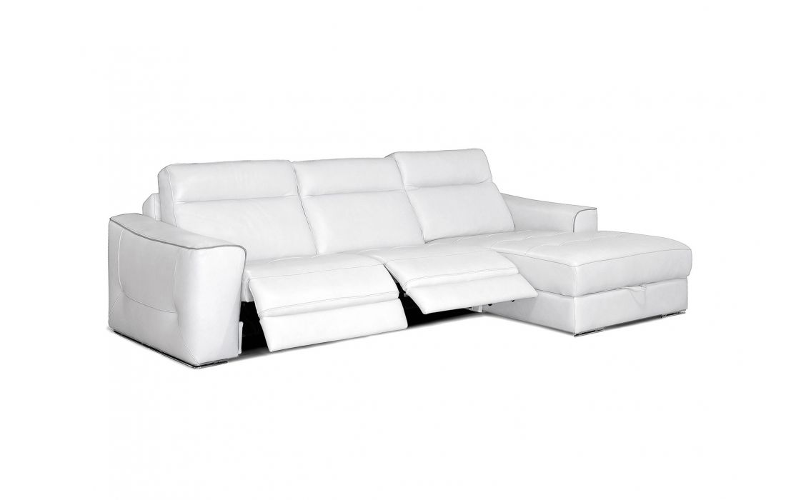 Sofá Relax c/ chaiselongMecanismo Relax eléctrico e almofadas de encosto reclináveis eléctricas.Dimensões em cm Sofá relax c/ chaiselong em tecido ou pele sintética (C) 283 x (P) 168 (A) 81/100Prazo de Entrega30 a 45 dias