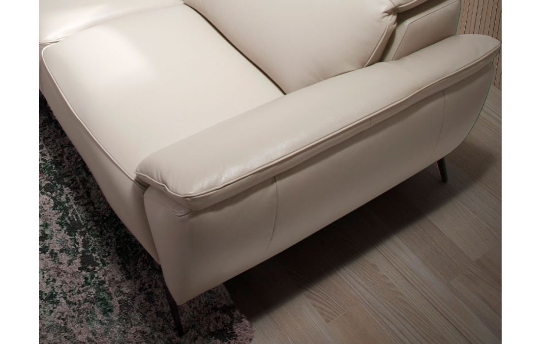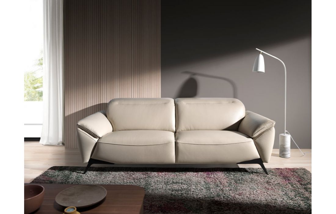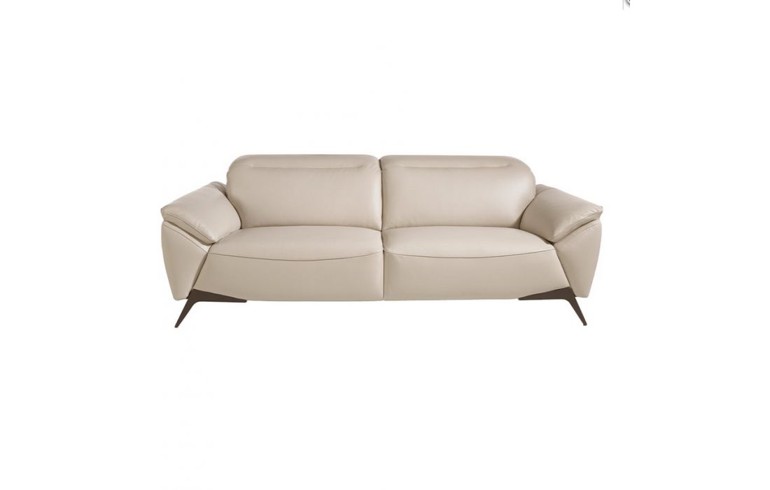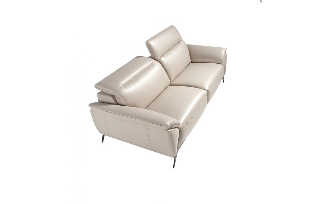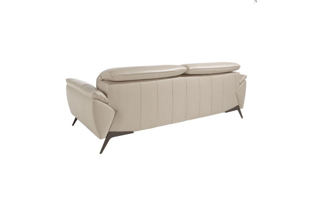 Sofá 3 assentos estofados em couro cinza taupe com encostos de cabeça articulados independentes e pernas de aço preto.Destinatário :