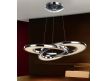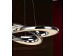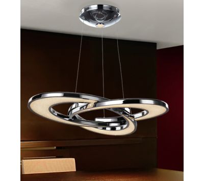 Candeeiro em metal com acabamento em cromado, figuras enlaçadas com iluminação LED interior, difusores de acrílico transparente e vidros no interior.