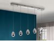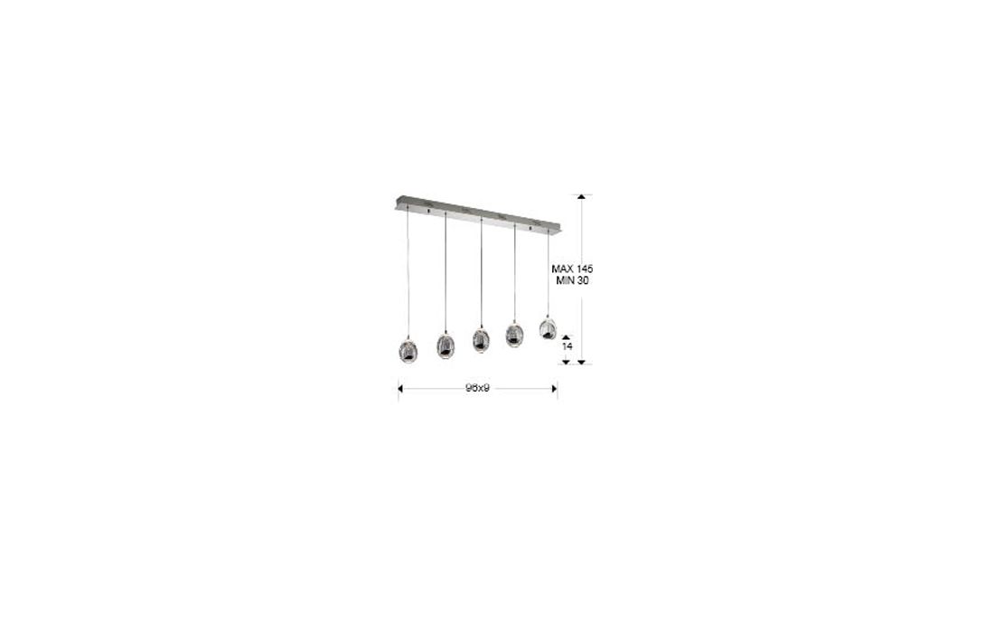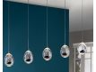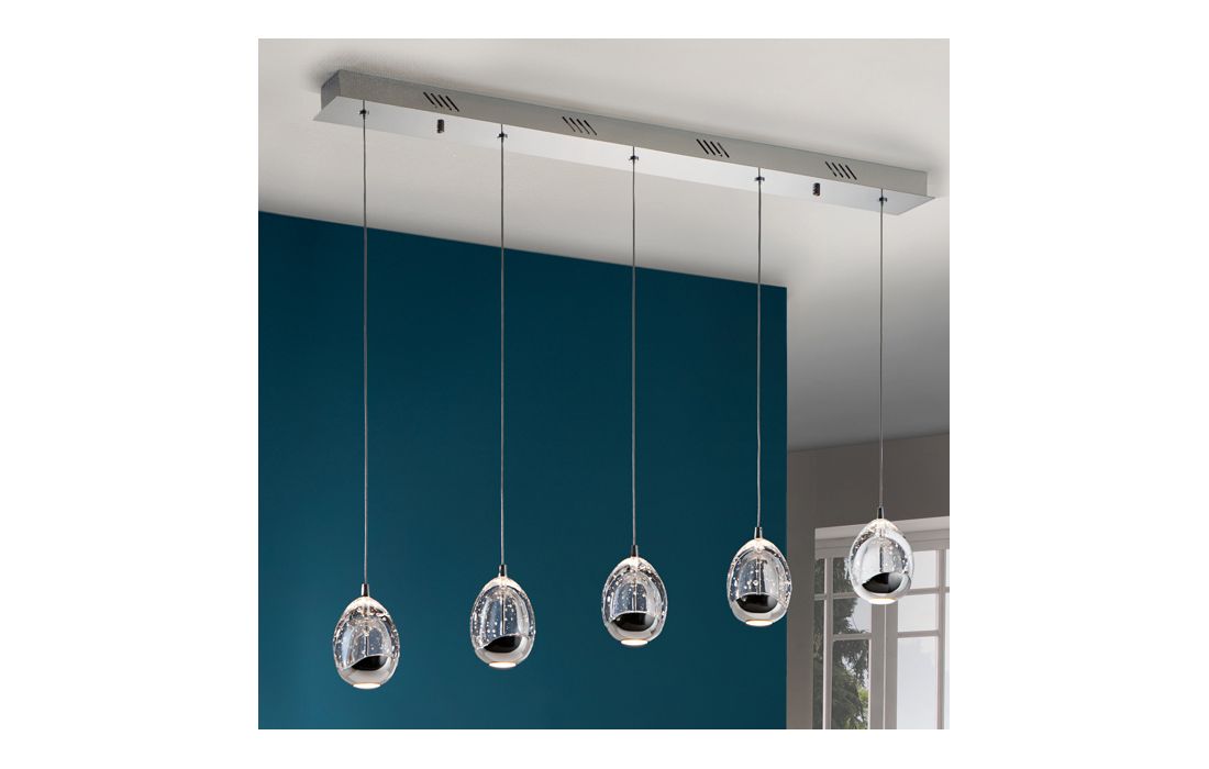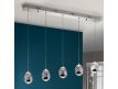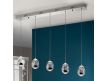 Candeeiro em metal com acabamento cromado e luz LED. Tulipas em forma de gota em vidro maciço com bolhas decorativas no seu interior. Reguláveis em altura.