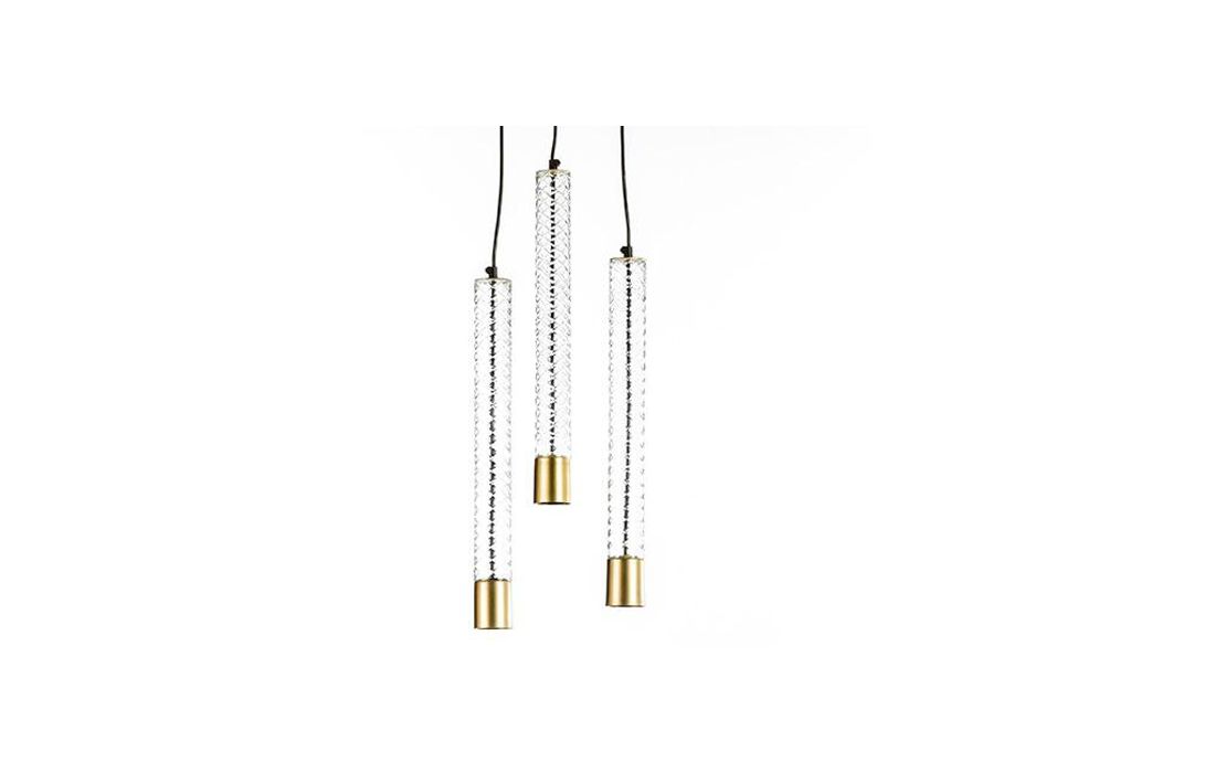 Candeeiro de teto sem abajur com 3 tubos em metal bronze.