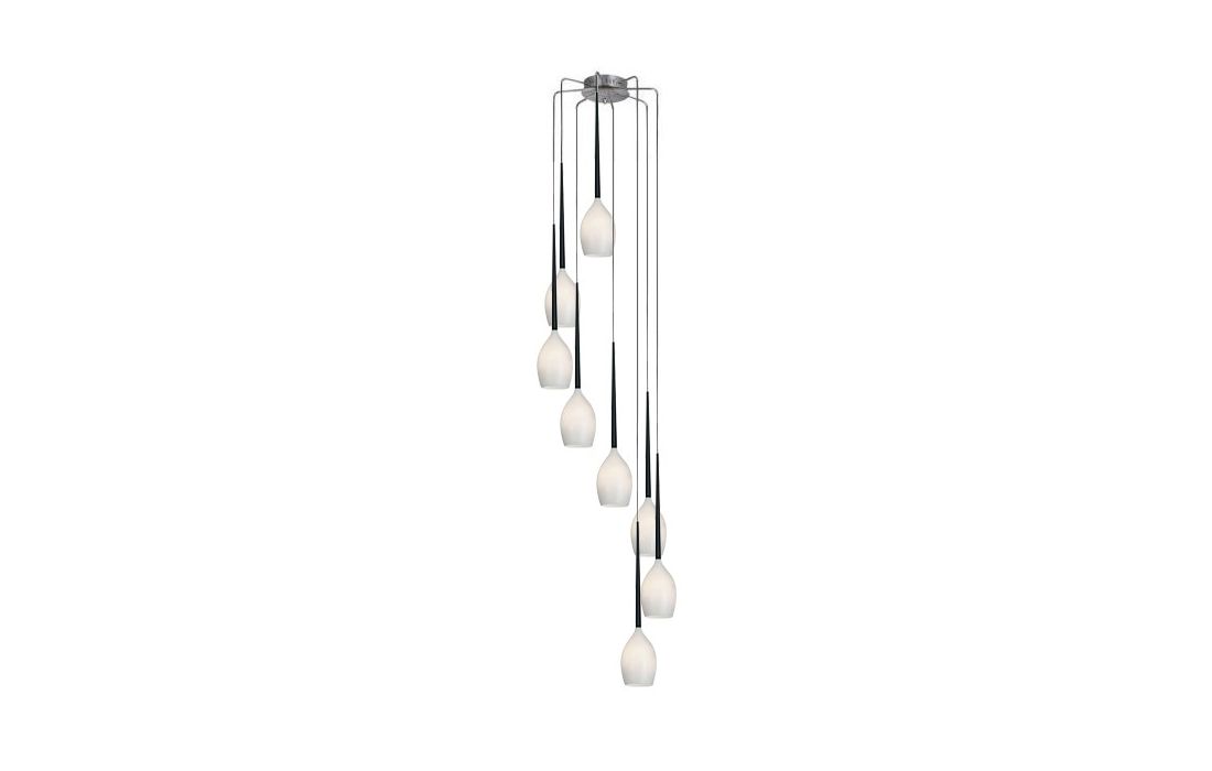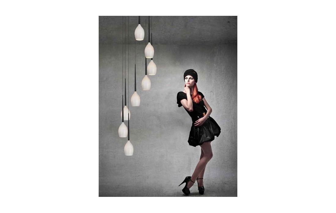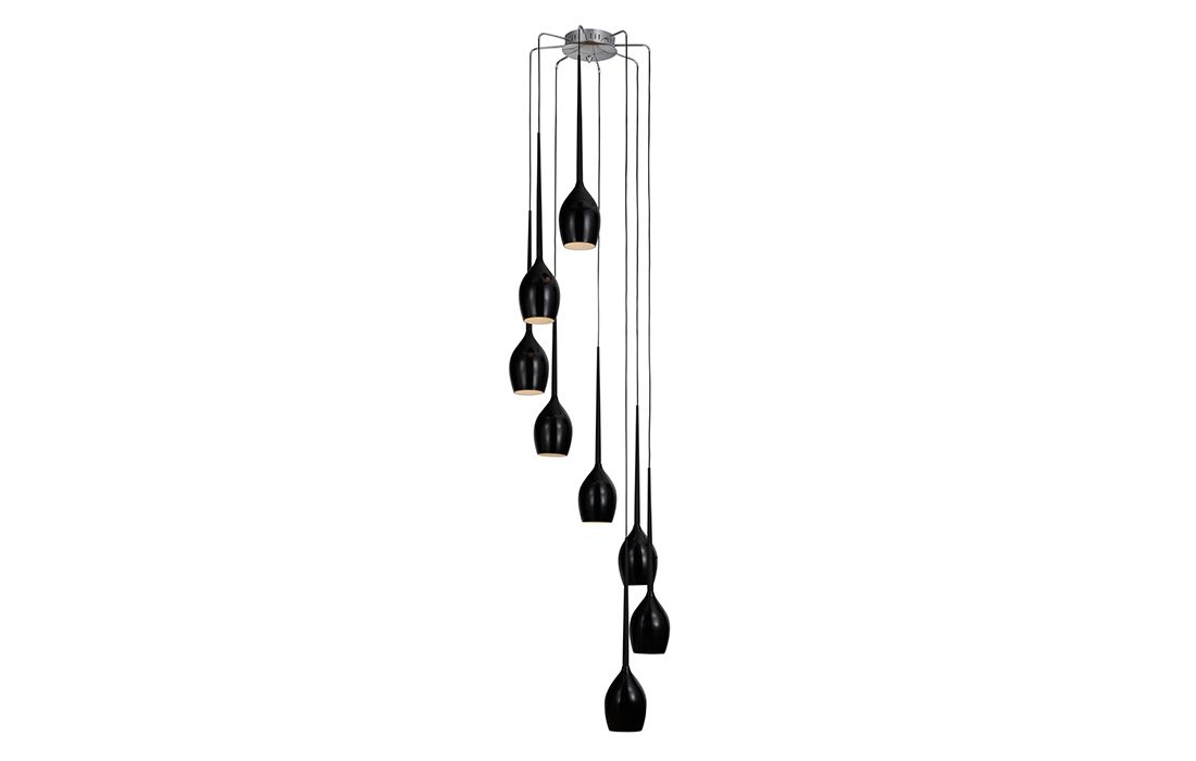Candeeiro de tecto com 8 lâmpadas em metal e vidro disponível em branco, preto, amarelo e verde.Destinatário :