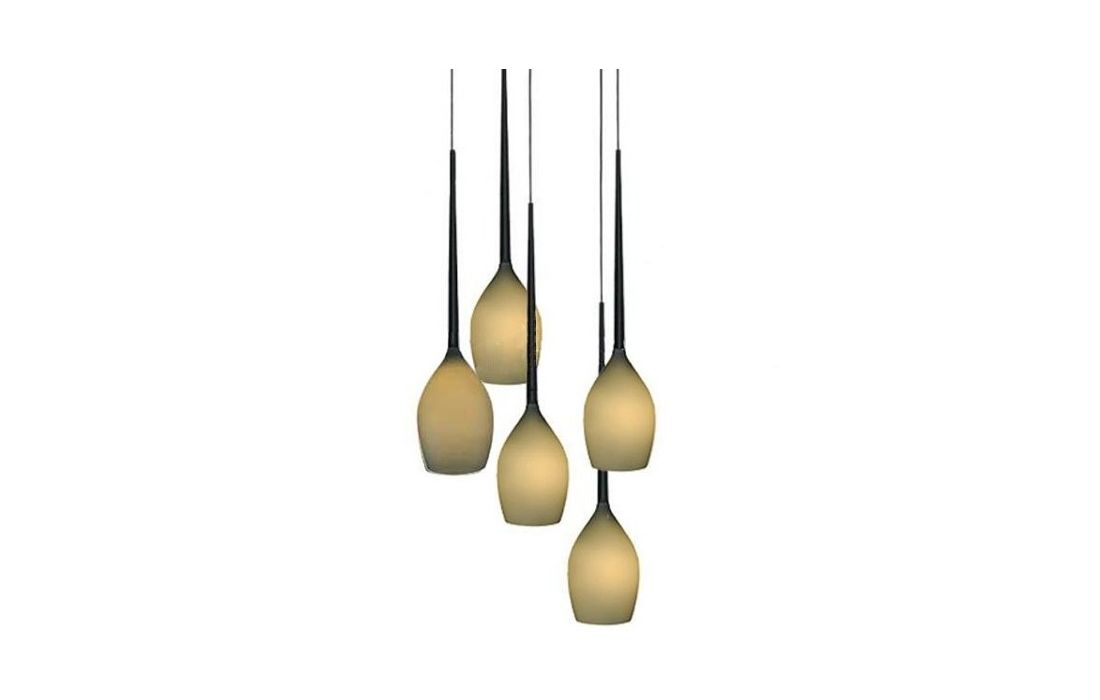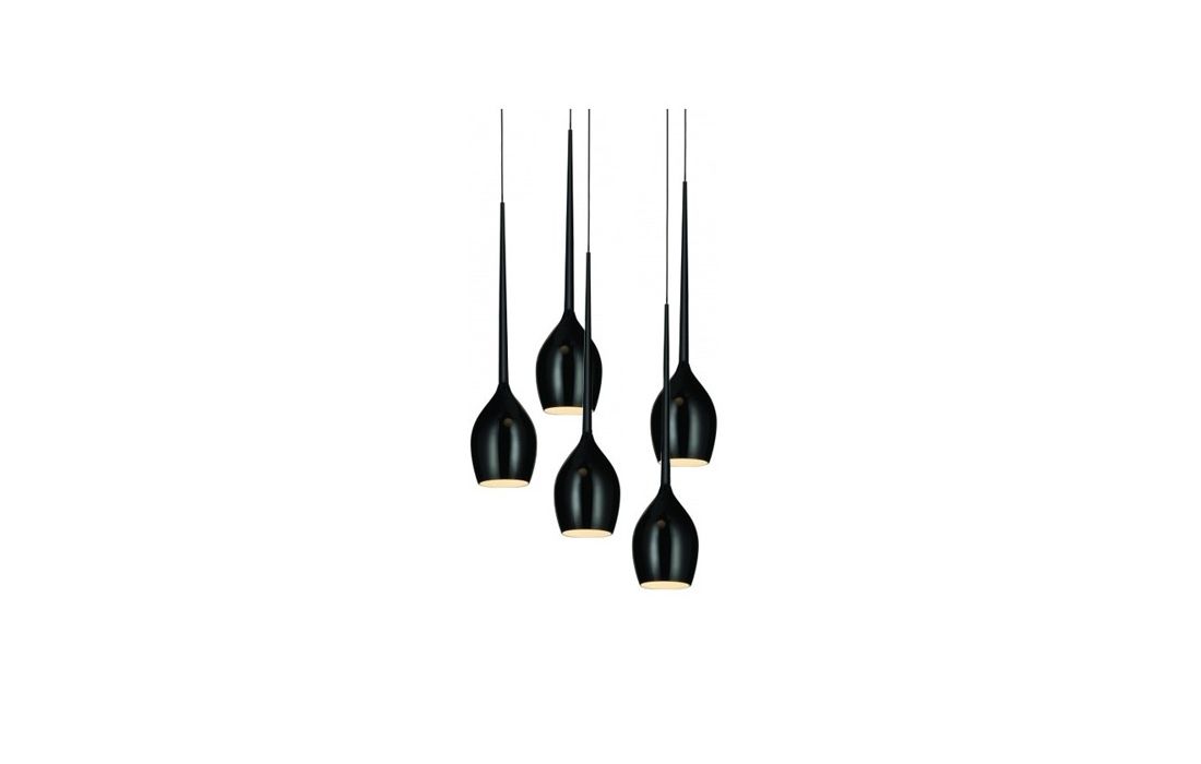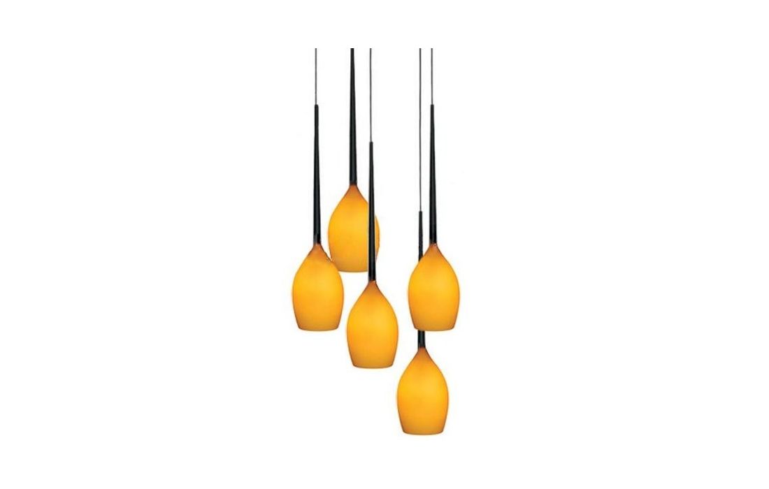 Candeeiro de tecto com 5 lâmpadas em metal e vidro disponível em branco, preto, amarelo e verde.Destinatário :