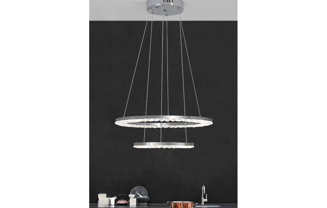 Candeeiro de teto em forma de aneis de LED, tornando o mesmo moderno e discreto. Candeeiro ideal para vários tipos de espaços.