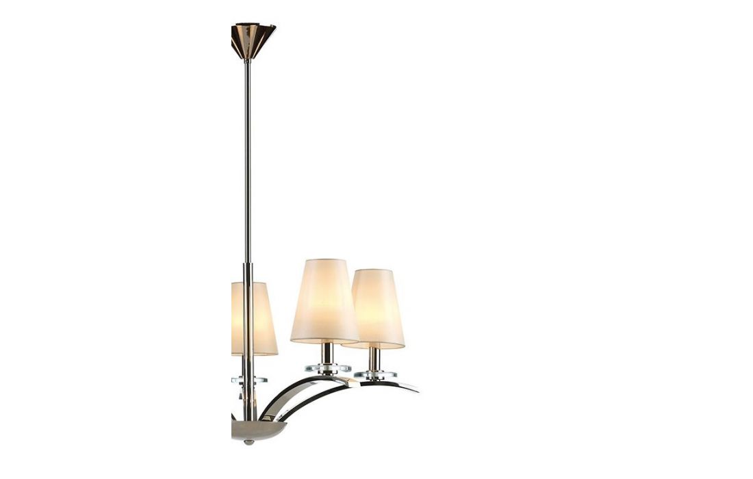 Um candeeiro de teto contemporâneo. Quando a luz atinge as campânulas, cria uma iluminação brilhante, que funciona perfeitamente para criar um ambiente relaxante na sua sala de estar.