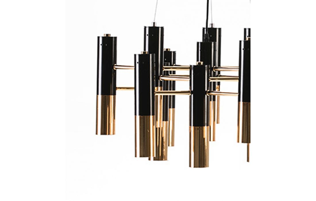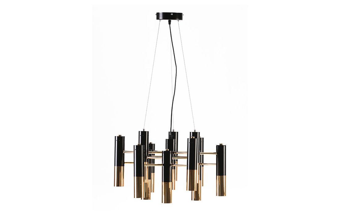Candeeiro de teto em metal dourado/preto.