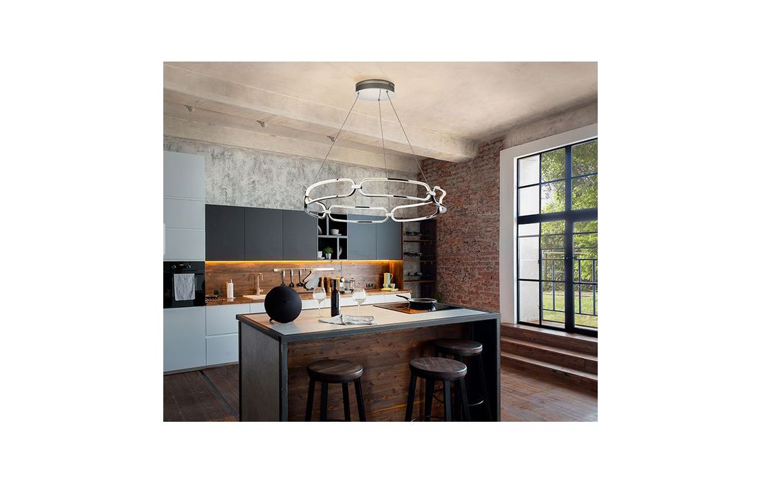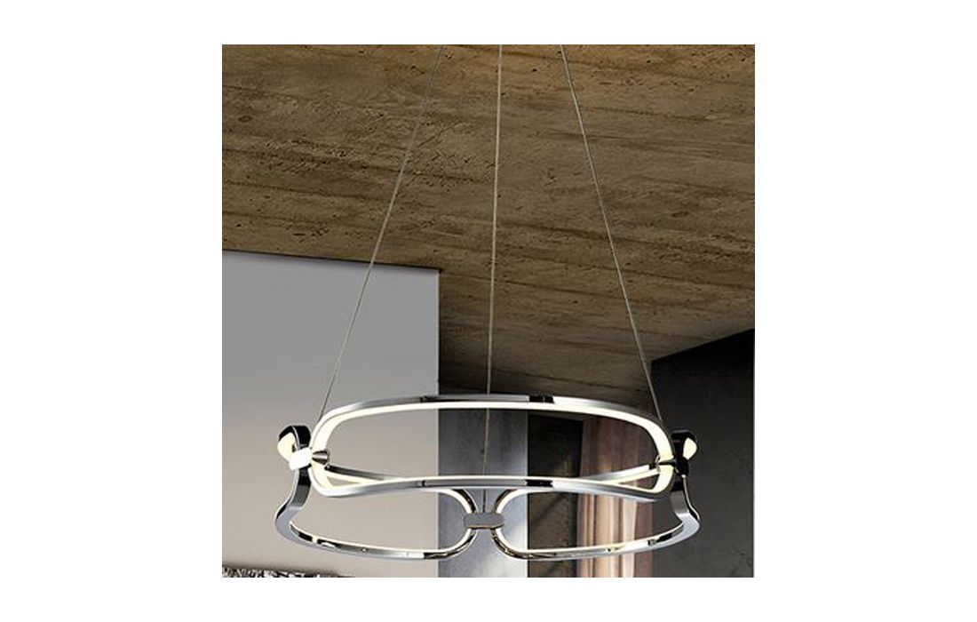 Candeeiro LED, realizado em alumínio com acabamento crómio. Difusores de silicone opalino. Regulável em altura. Disponivel em tamanho grande e pequeno.