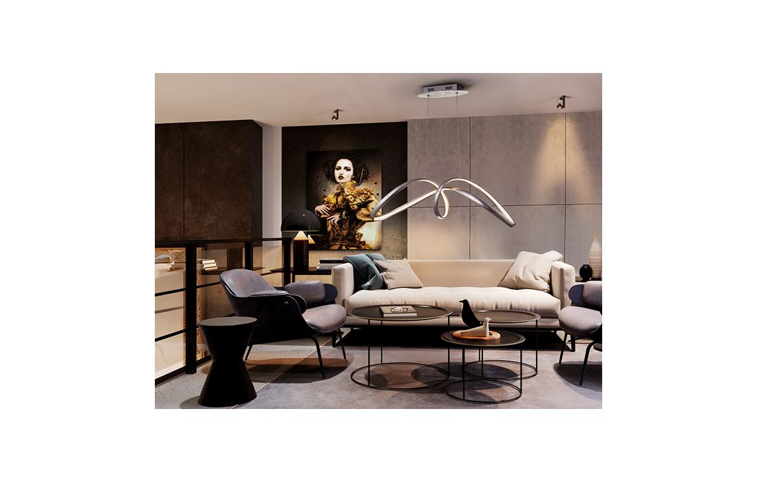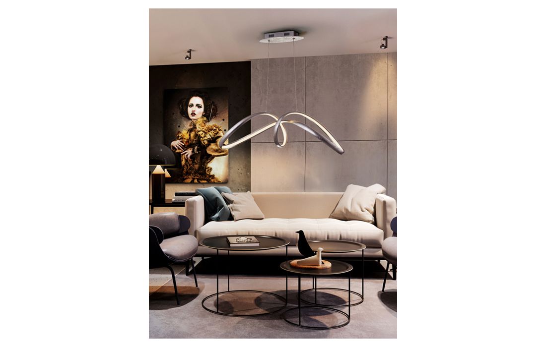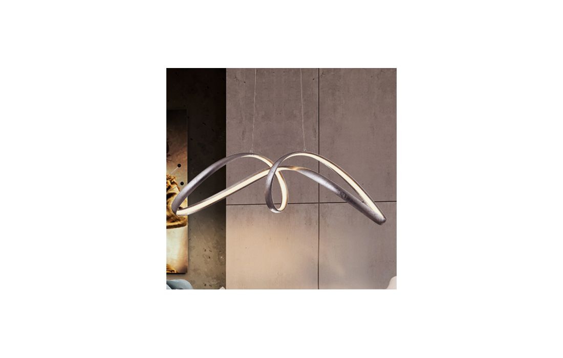 Candeeiro de teto em aço e alumínio acabamento folha de prata. Difusor silicone opalino. Regulável em altura.
