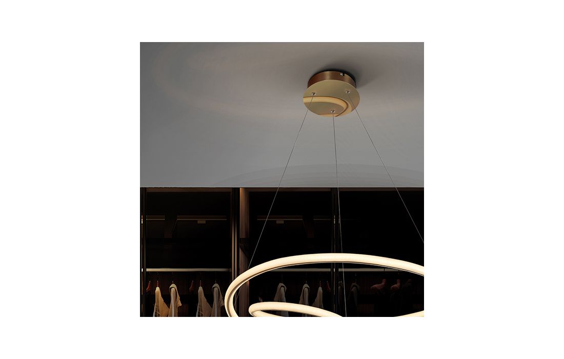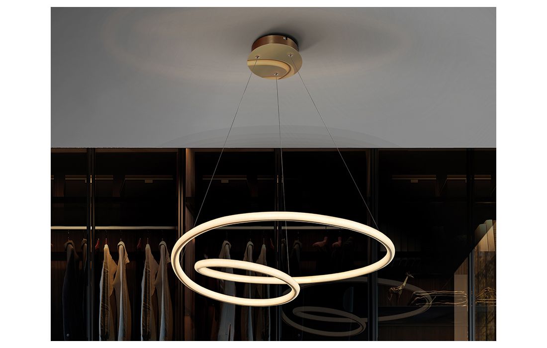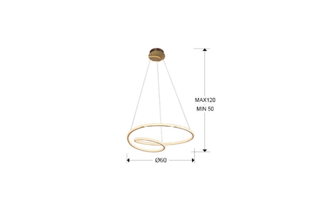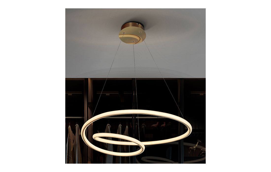 Candeeiro realizado em metal e alumínio. Acabamento dourado brilho e dourado mate. Difusor tubular de silicone opalino.