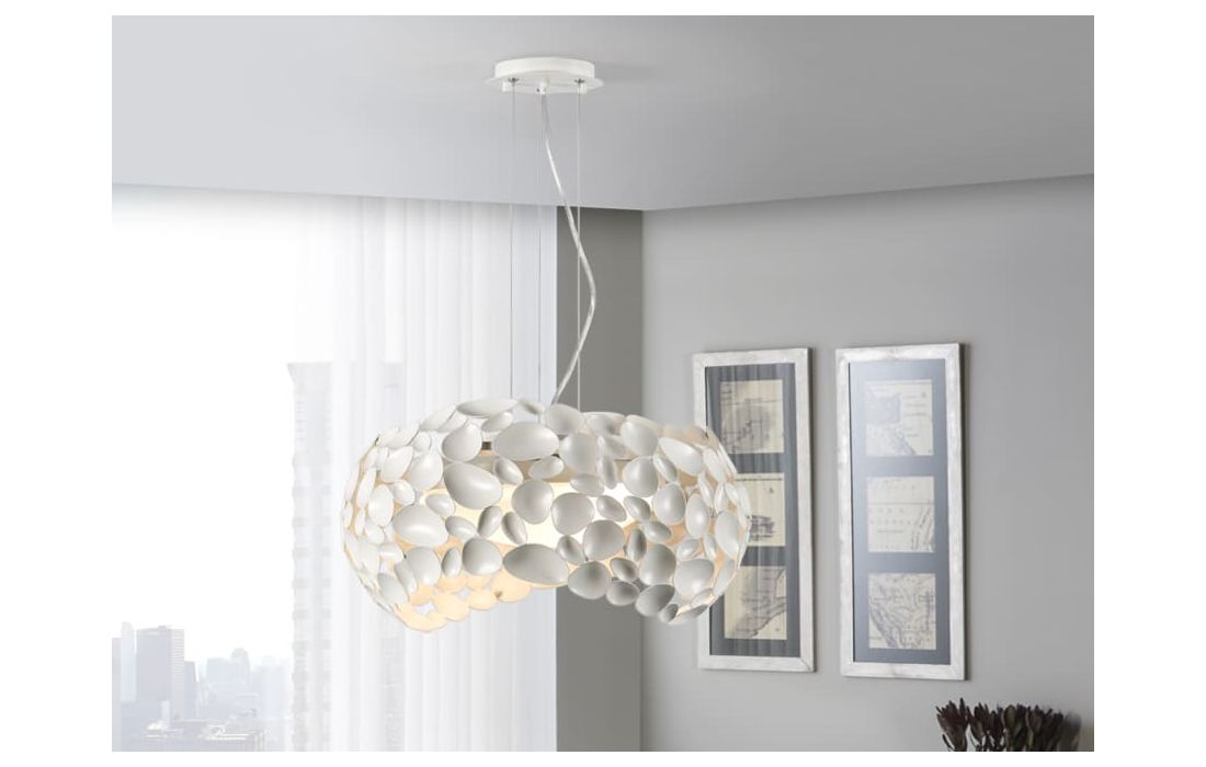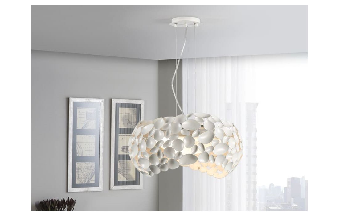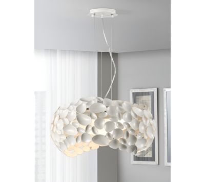 Candeeiro de teto 5 Luzes acabamento em metal. Acabamento em lacado branco. Difusor acrílico interior. Regulável em altura.