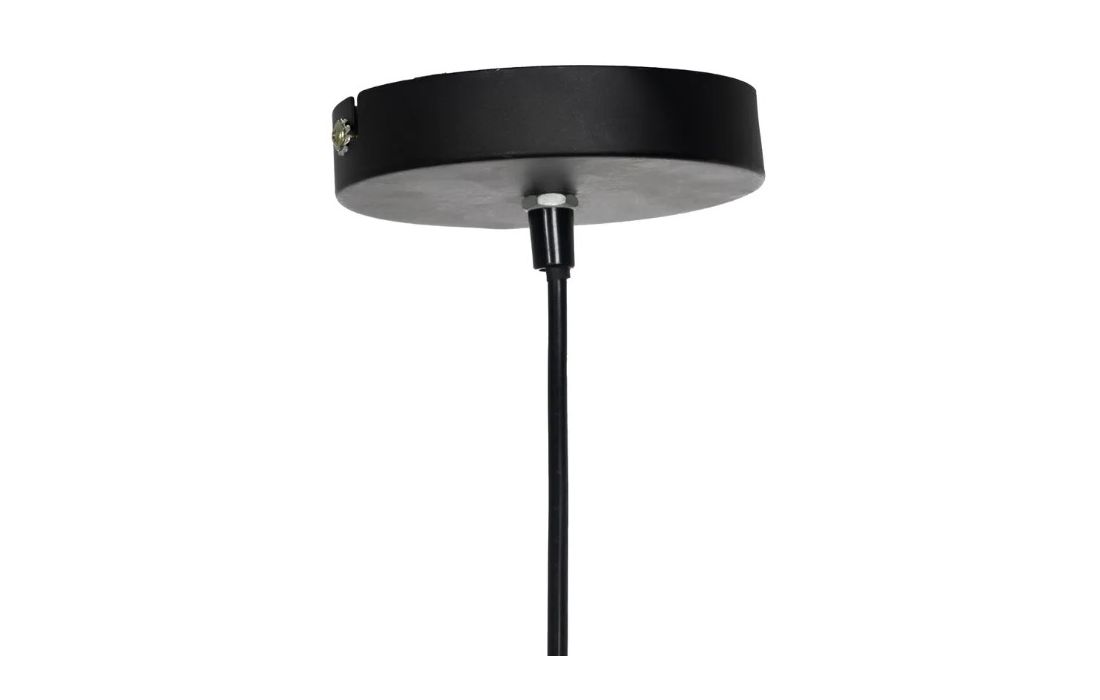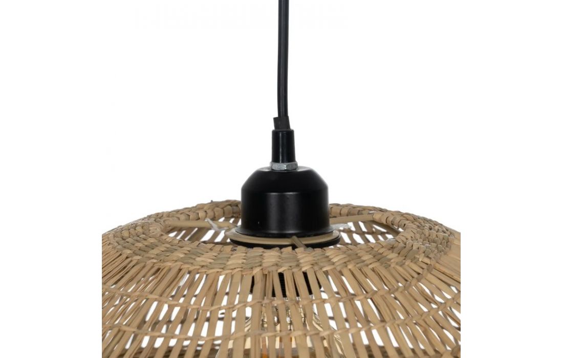 Candeeiro de teto com estrutura em fibra natural e ferro.