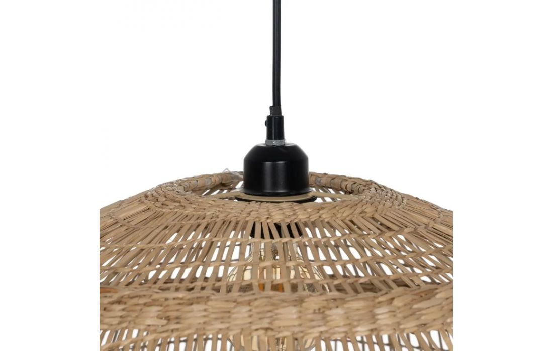 Candeeiro de teto com estrutura em fibra natural e ferro.
