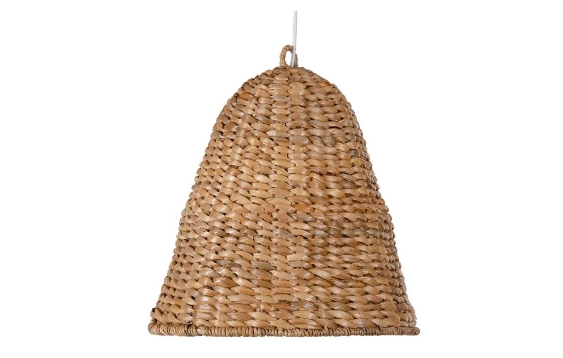 Candeeiro de teto com estrutura em fibra natural e ferro.