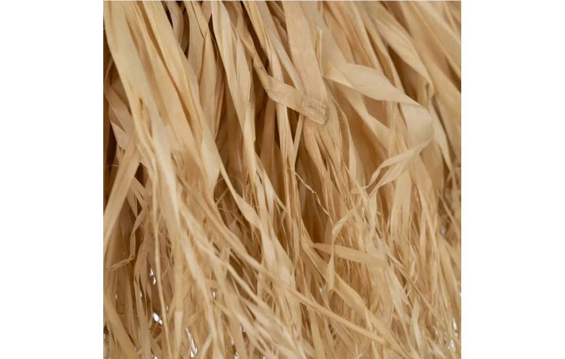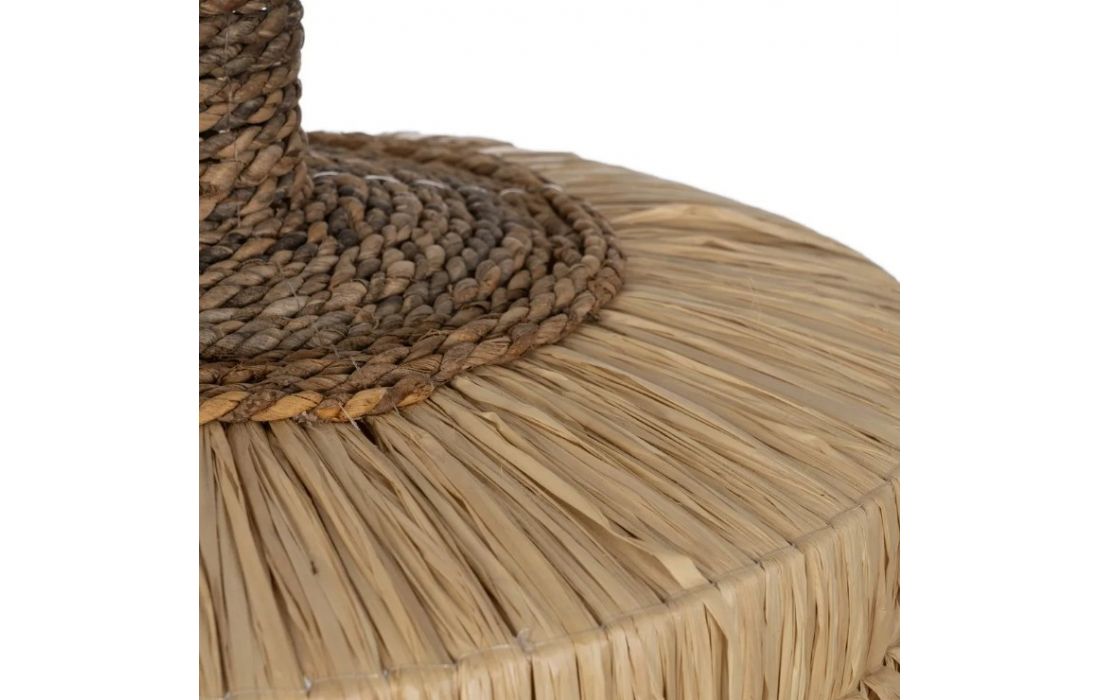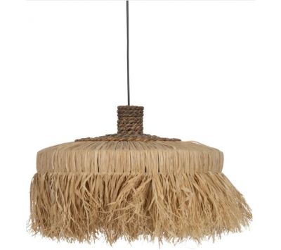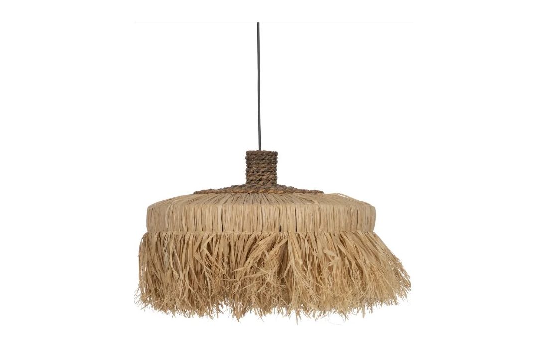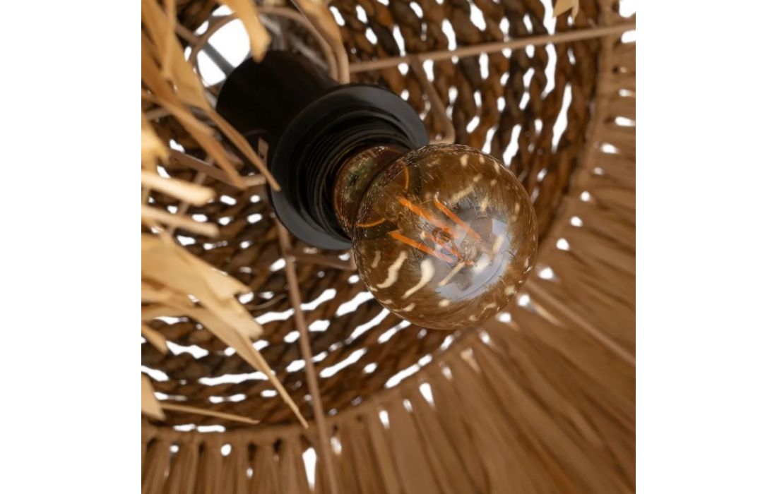 Candeeiro de teto com estrutura em fibra natural e ferro.