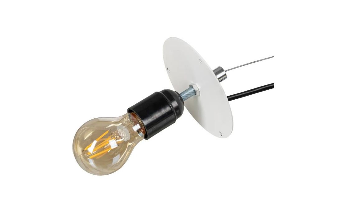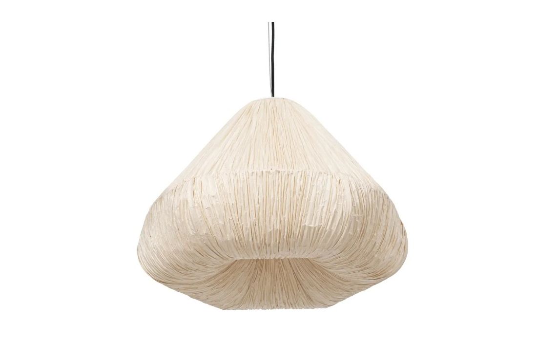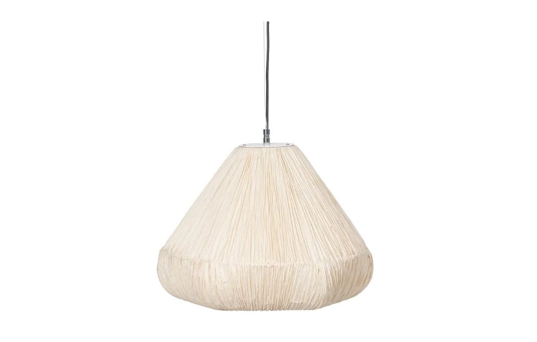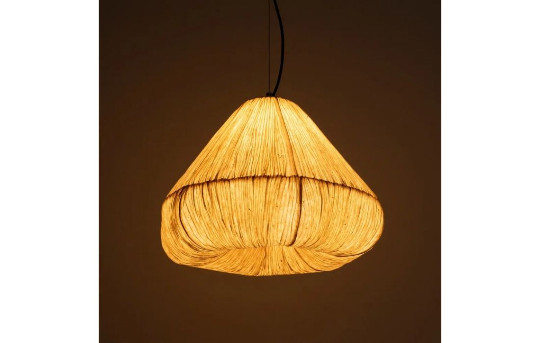 Candeeiro de teto com estrutura em papel e casquilho em ferro.