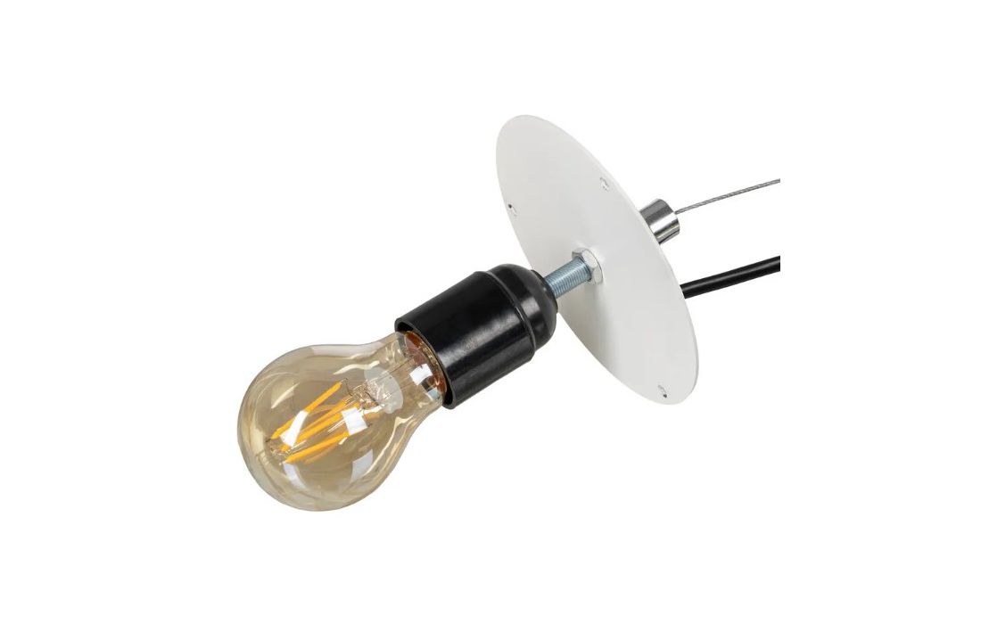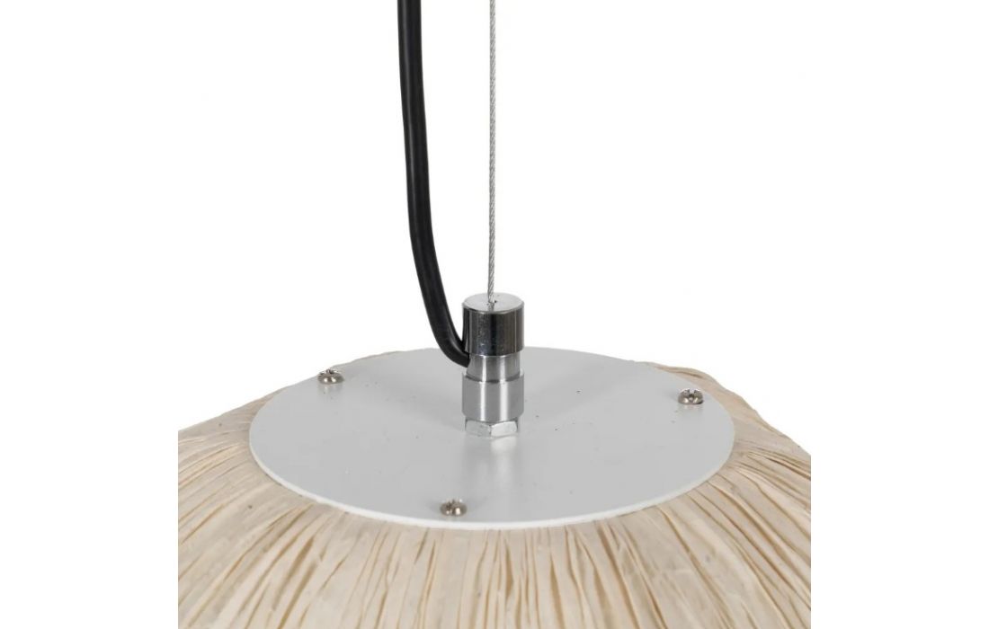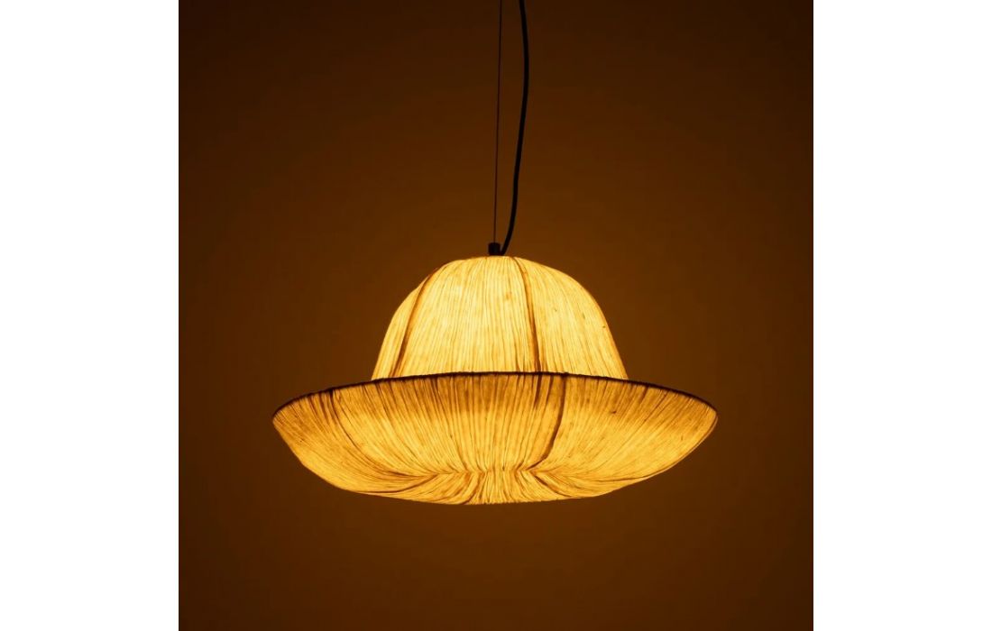Candeeiro de teto com estrutura em papel e casquilho em ferro.