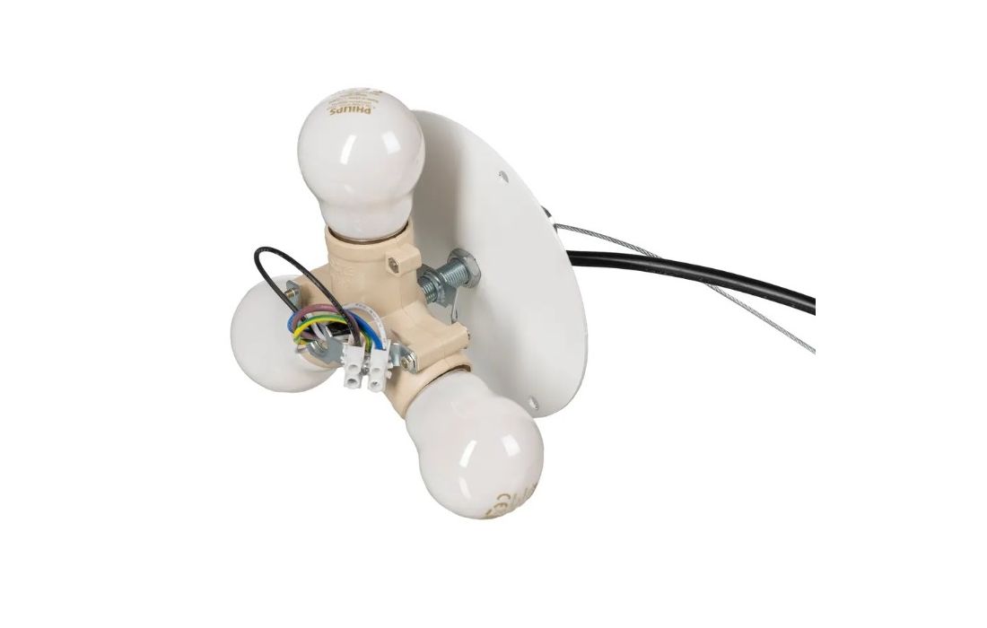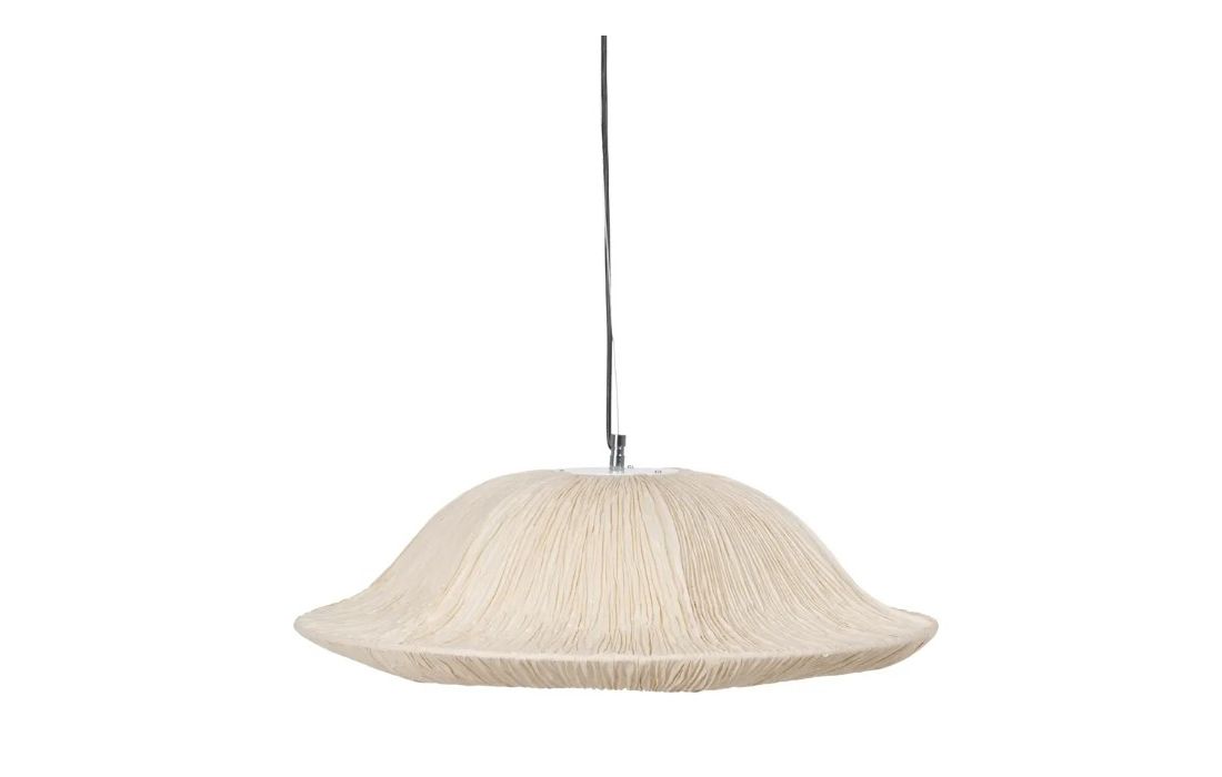 Candeeiro de teto com estrutura em papel e casquilho em ferro.