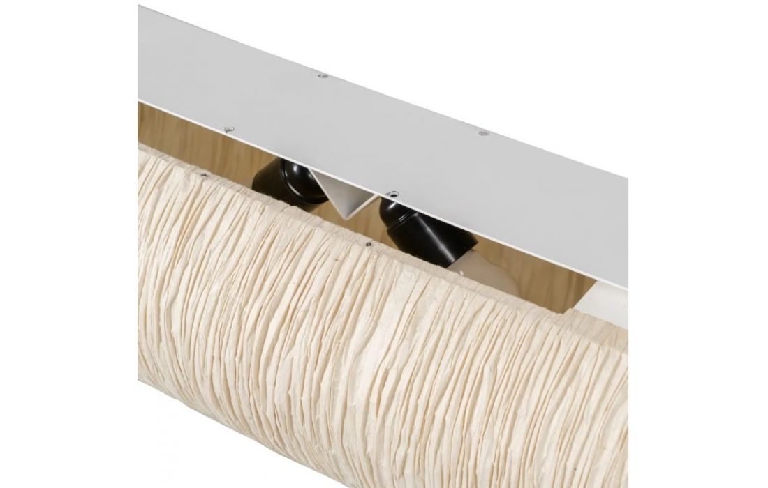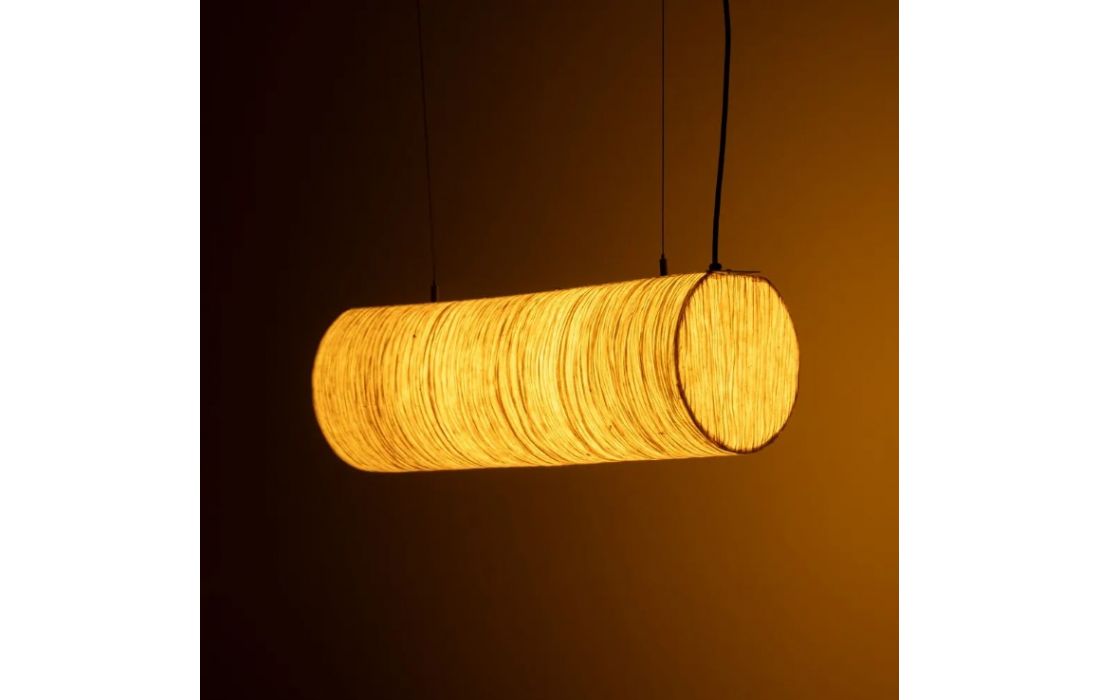 Candeeiro de teto com estrutura em papel e casquilho em ferro.
