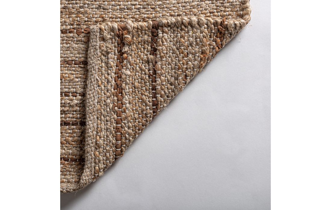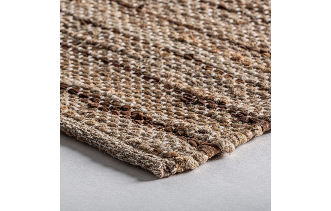 Tapete estilo boho feito de juta e couro em tons de castanho