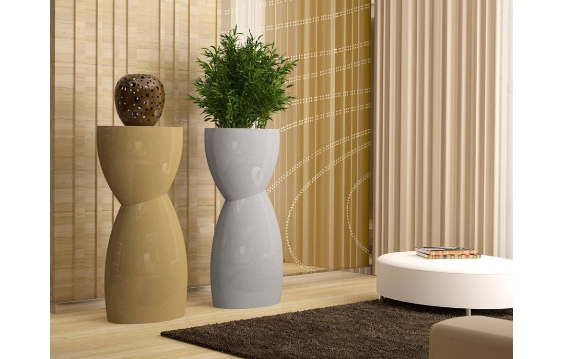Vaso estilo contemporâneo feito em argila na cor castanho claroDimensões em cmGrande: D 19 A 38Médio: D 17 A 31Pequeno: D 14 A 22 Prazo de Entrega10 a 20 dias