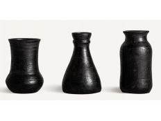Vaso estilo contemporâneo feito em argila na cor castanho claroDimensões em cmGrande: D 19 A 38Médio: D 17 A 31Pequeno: D 14 A 22 Prazo de Entrega10 a 20 dias