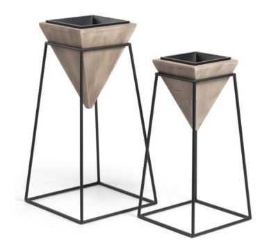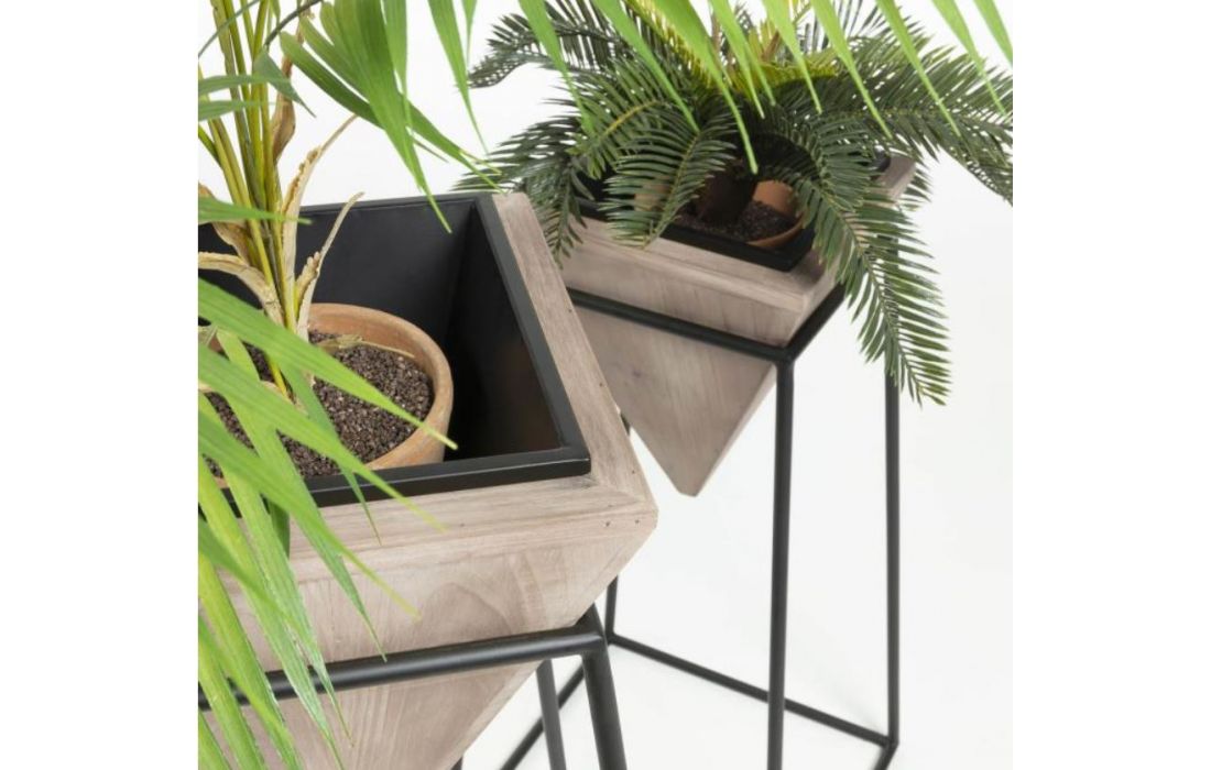 Conjunto de 2 floreiras em madeira com suportes em metal