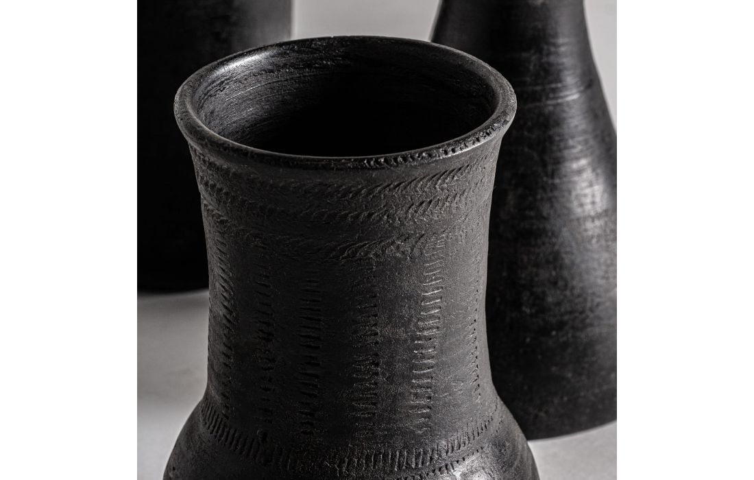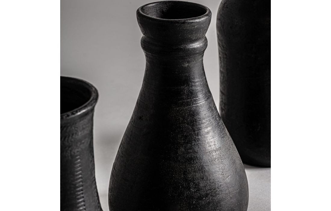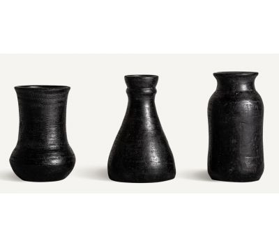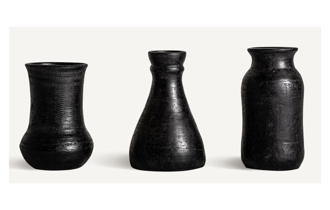 Conjunto de 3 vasos estilo contemporâneo feito em terracota na cor preta
